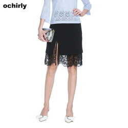 ochirly欧时力新女装拼接镂空蕾丝纯色开叉包臀裙半裙1JY1073590