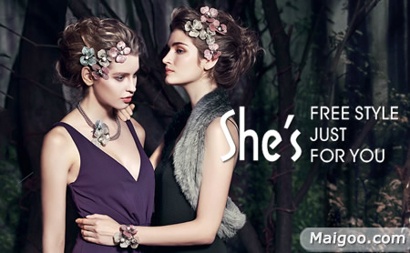 致力于为25-35岁时尚女性打造系列饰品的品牌连锁企业,以其清新自然、活泼靓丽的风格著称She's源于欧洲,融欧美流行时尚与中国传统文化完美结合,全力打造国际、高雅、时尚的she's形象。截取国际流行元素,综合自身设计优势,She's推出发饰、链饰、围巾、胸针、太阳眼镜及其它系列饰品,以适合25-35岁时尚女性的需求。迄今为止,She's已拥有300多个连锁经营网点的规模,进驻了包括北京、上海等大城市的高端商场,进而向国际化市场进军,目前,She's已成功打入美国、日本、德国、格鲁吉亚、越南等市场。恪守产品个性化,策略差异化,She's不断提升品牌战略,专注产品开发开发设计和媒体推广,以提升品牌知名度、美誉度、忠诚度,全力打造“创新的茜子,服务的茜子,国际的茜子”品牌,引领女性消费潮流,展示女性的高贵与优雅。品牌简介She's坚持“FREESTYLEJUSTFORYOU”的理念,以自然美学为基础,沉淀时尚优雅风格,为都市女性提供多元的时尚蓝本,经过10多年的品牌积淀和市场感知,迄今已拥有近400家店铺。温婉含蓄,感性审美,作为国内一线配饰品牌,She’s以发饰为主,涵盖了眼镜、围巾、帽子、精品等主要品类,独特的色彩搭配,精致的原料选配和多样的款型,追求极致卓越的设计团队,充分表达出she’s配饰的时尚与浪漫,创造出赋予品位格调而又贴近生活的配饰语言。随心悦己的风..