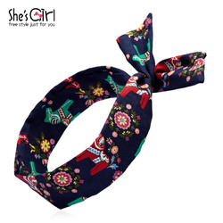 shesgirl茜子发饰 奇趣动物小马小猫咪甜美印花布艺发带发箍头饰