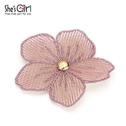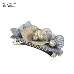 shes发饰 手工双色刺绣花朵盘发发夹仿珍珠弹簧夹横夹马尾夹头饰