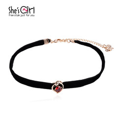 Shes Girl茜子饰品 小熊守护的心气质丝绒锁骨链choker项链礼品