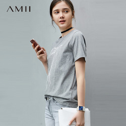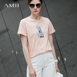 Amii极简港味chic欧洲站印花T恤女2018夏装新款显瘦圆领短袖上衣