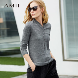 amii极简ins欧洲站港风复古2018春新款打底套头v领黑色针织衫毛衣