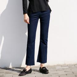 amii极简chic复古ins流苏微喇叭裤子2018夏九分大码牛仔裤宽松女