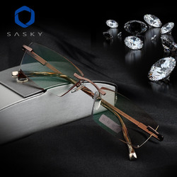 明月无框切边眼镜框男 钛合金近视眼镜架镶钻 可配明月1.74镜片
