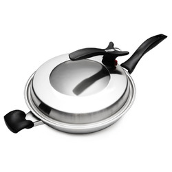 法国铂帝斯 304不锈钢炒锅无涂层不粘锅炒菜锅燃气电磁炉通用