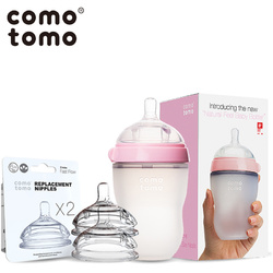 【旗舰店】COMOTOMO可么多么硅胶奶瓶150+2滴奶嘴套装宽口径防摔