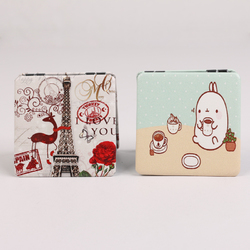 瑞芙妮便携2X双面化妆镜子2倍高清迷你随身放大镜PU小方镜子