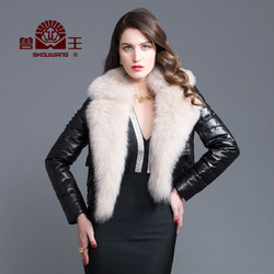 兽王新款狐狸毛领翻领保暖绵羊皮真皮羽绒服短款修身外套女士女装
