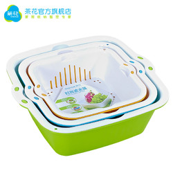 茶花塑料盆防滑 洗脸盆加厚大中小三件套 家用洗衣盆宝宝盆耐用