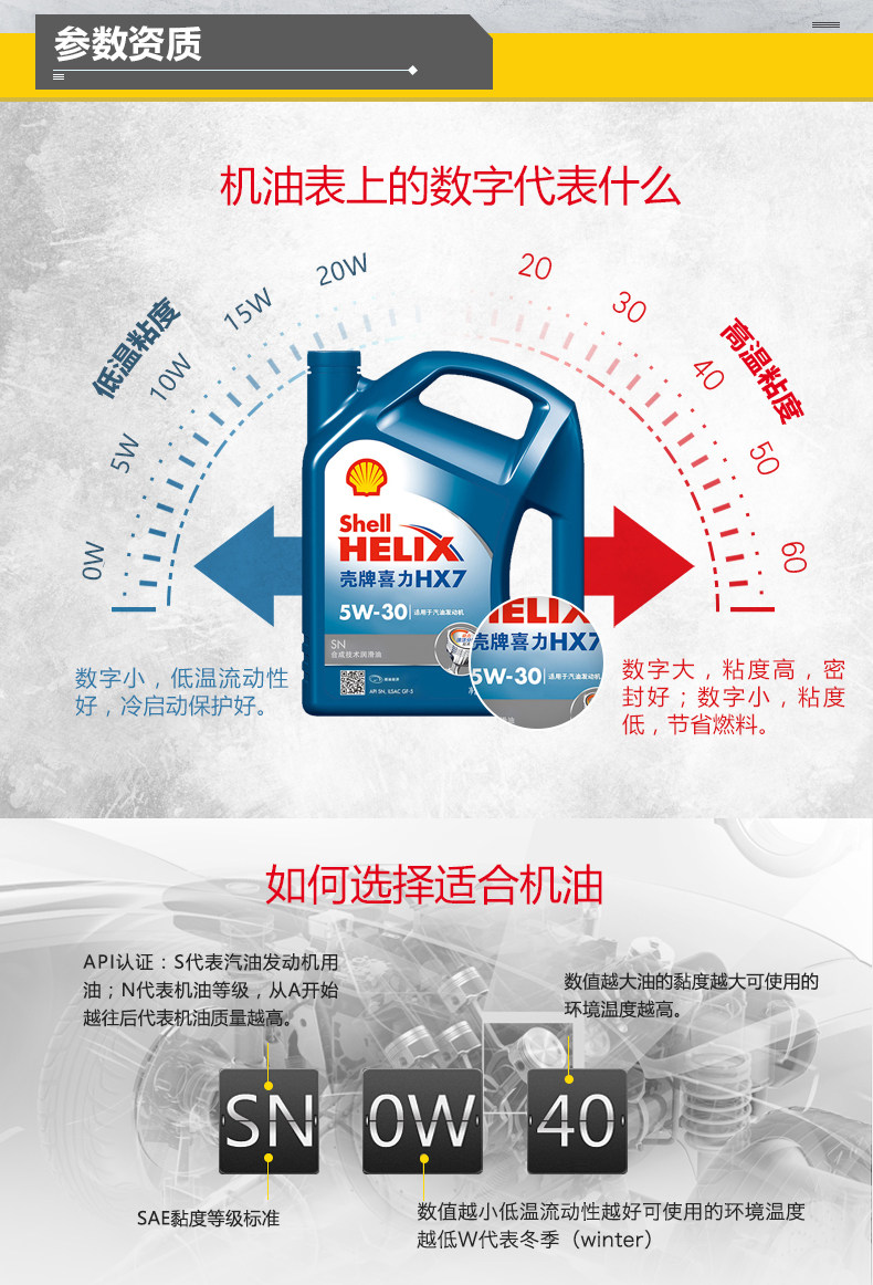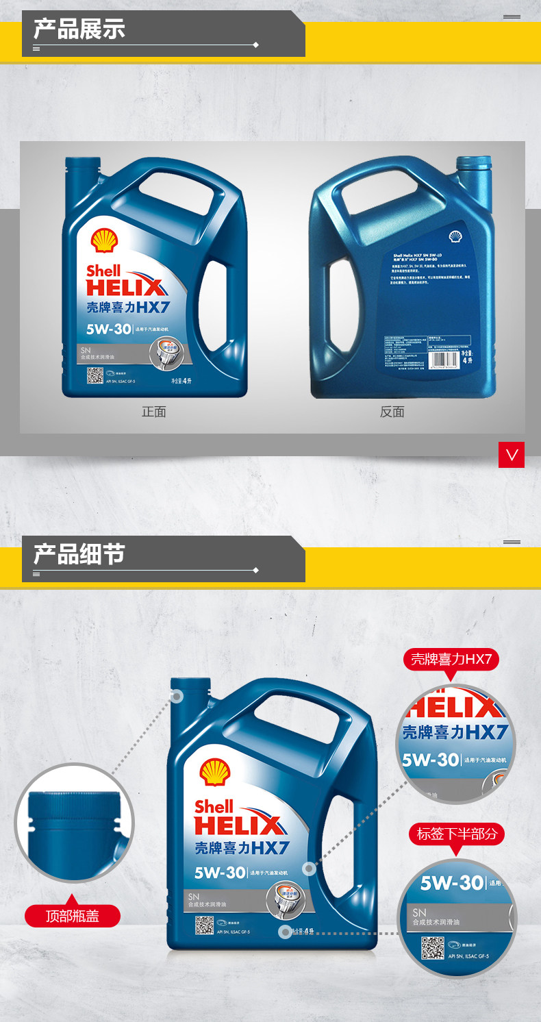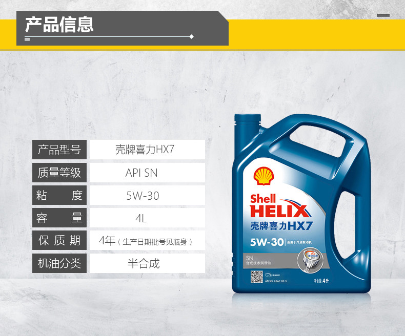 壳牌机油正品 黄壳HX5 黄喜力 汽车 汽油机油 发动机 润滑油 包邮