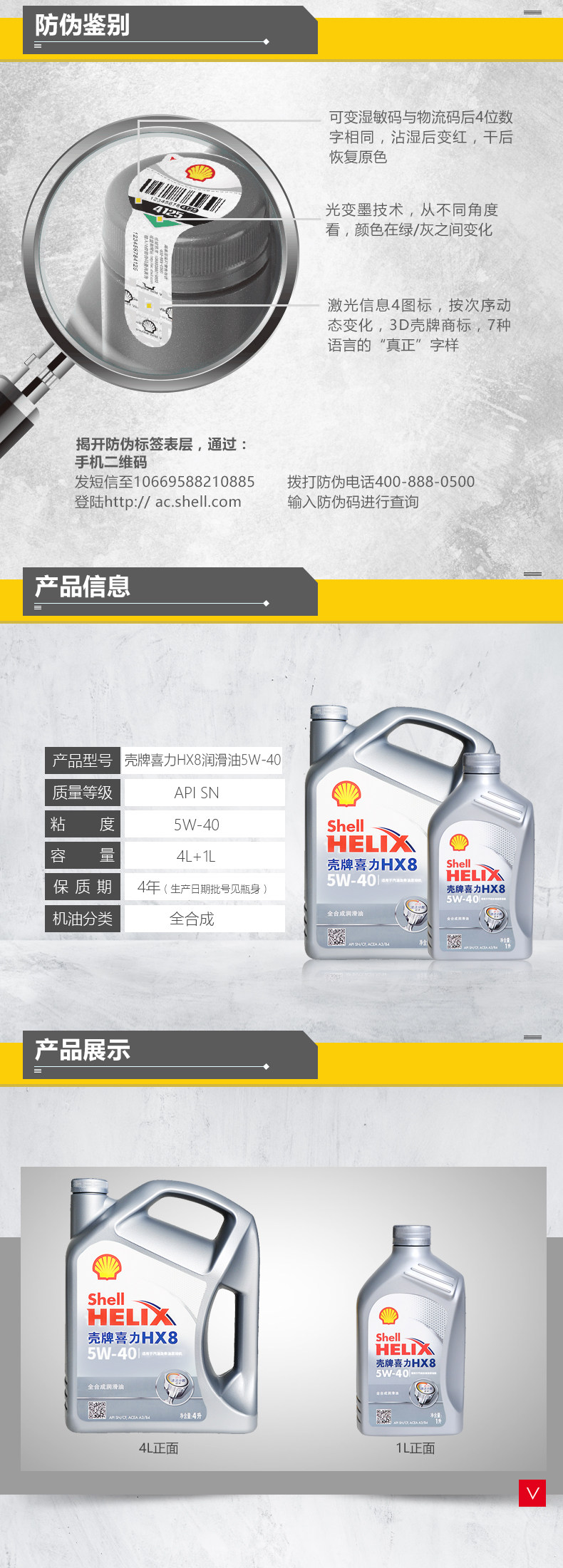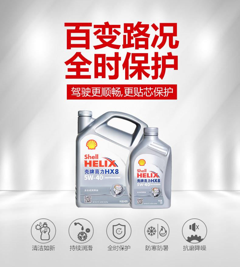 Shell壳牌灰壳HX8 5W-40全合成汽车润滑机油 4L+1L