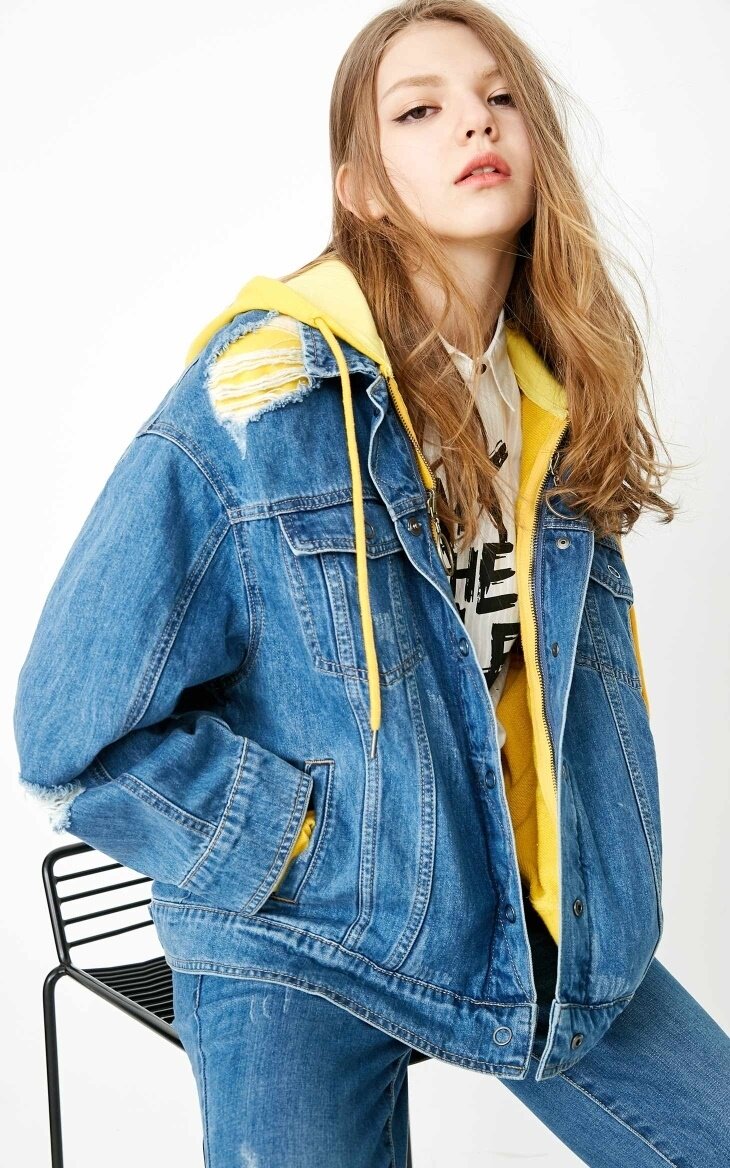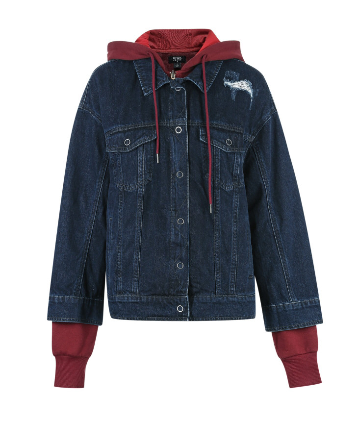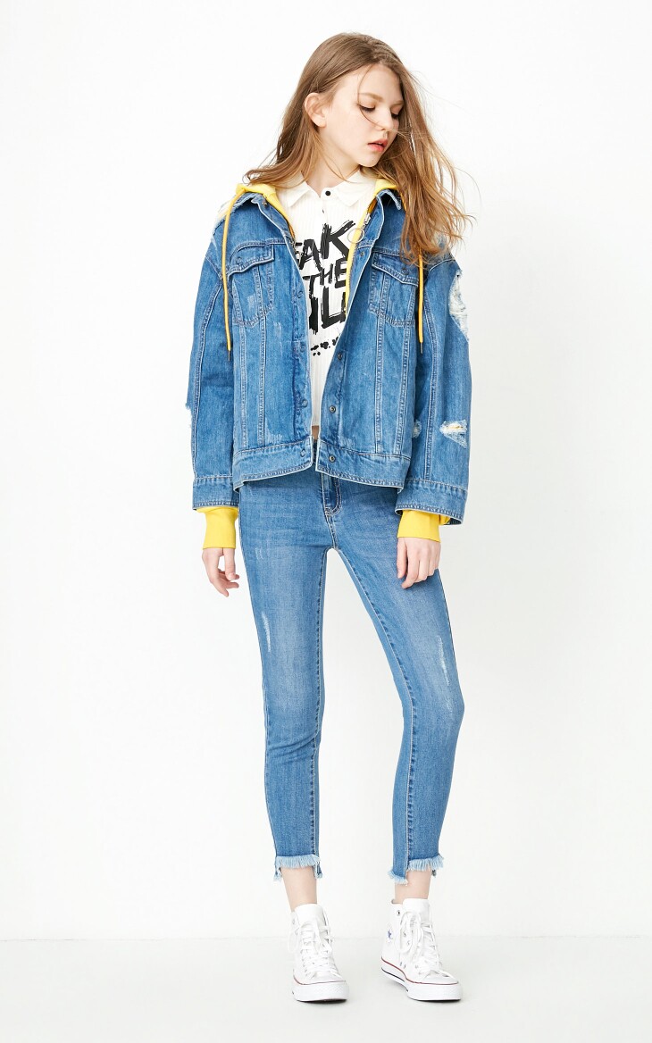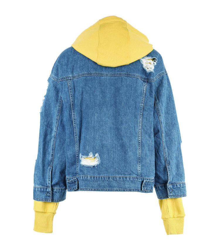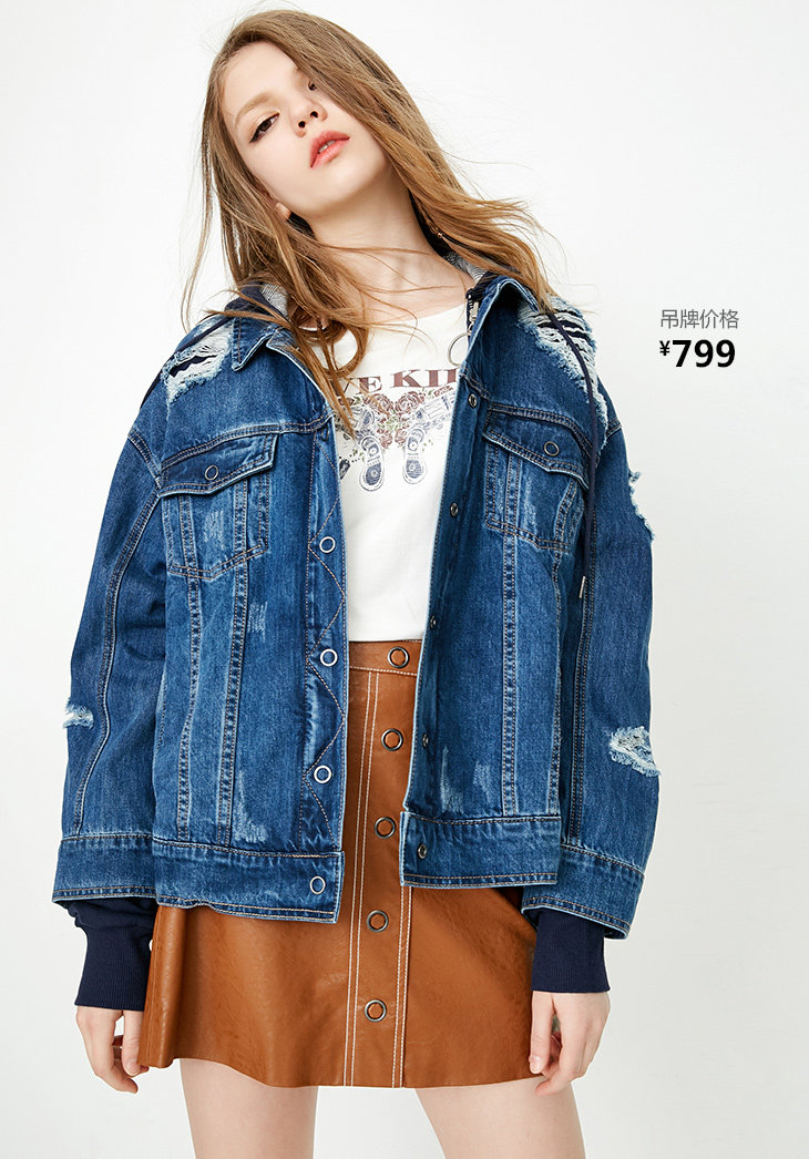设计卖点 | ●抽绳连帽 ●破洞设计 ●可拆卸成连帽开衫卫衣和破洞牛仔外套 |