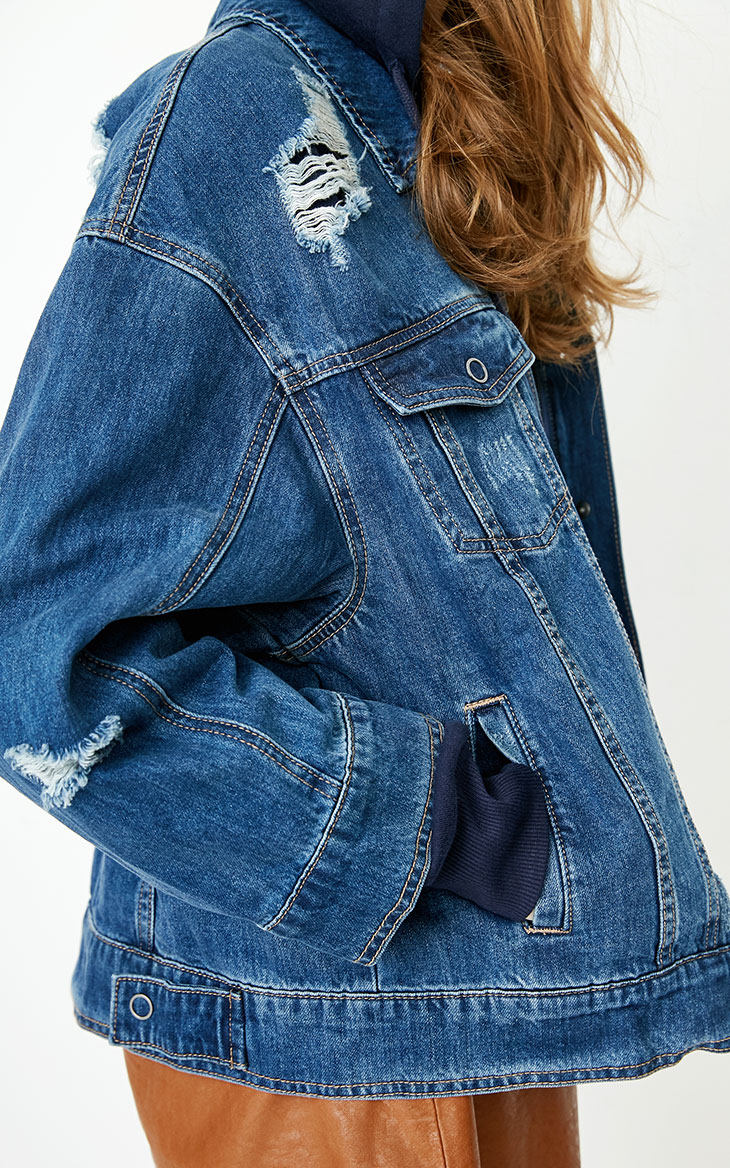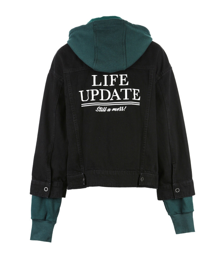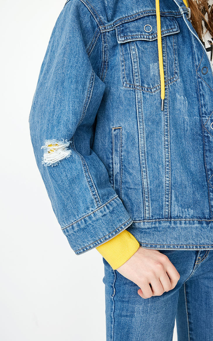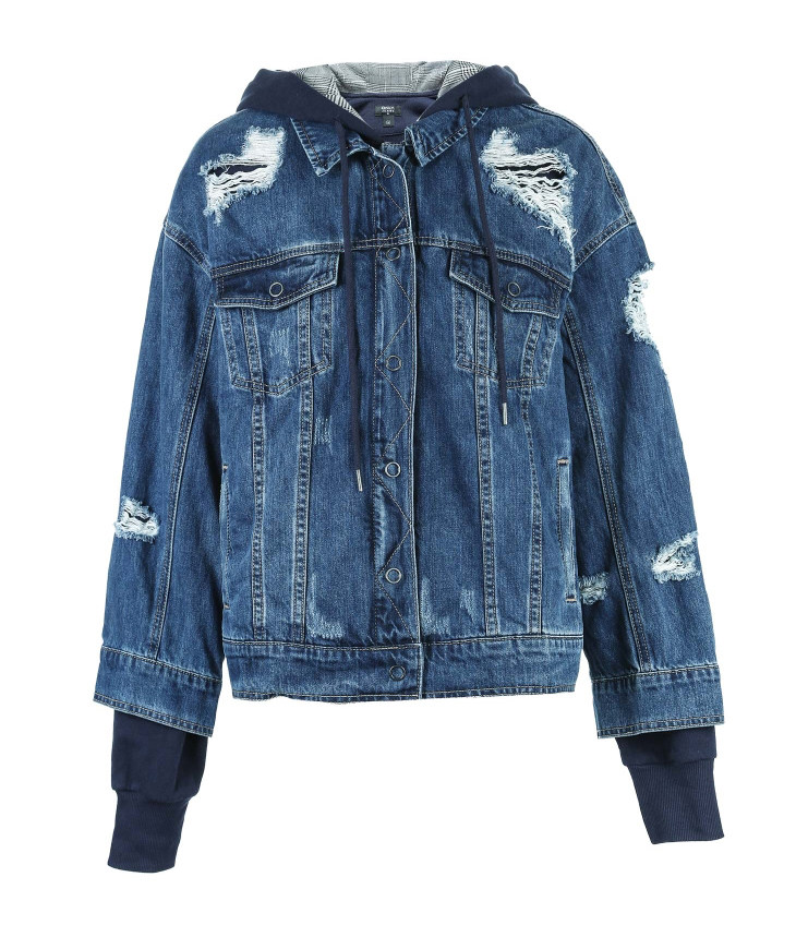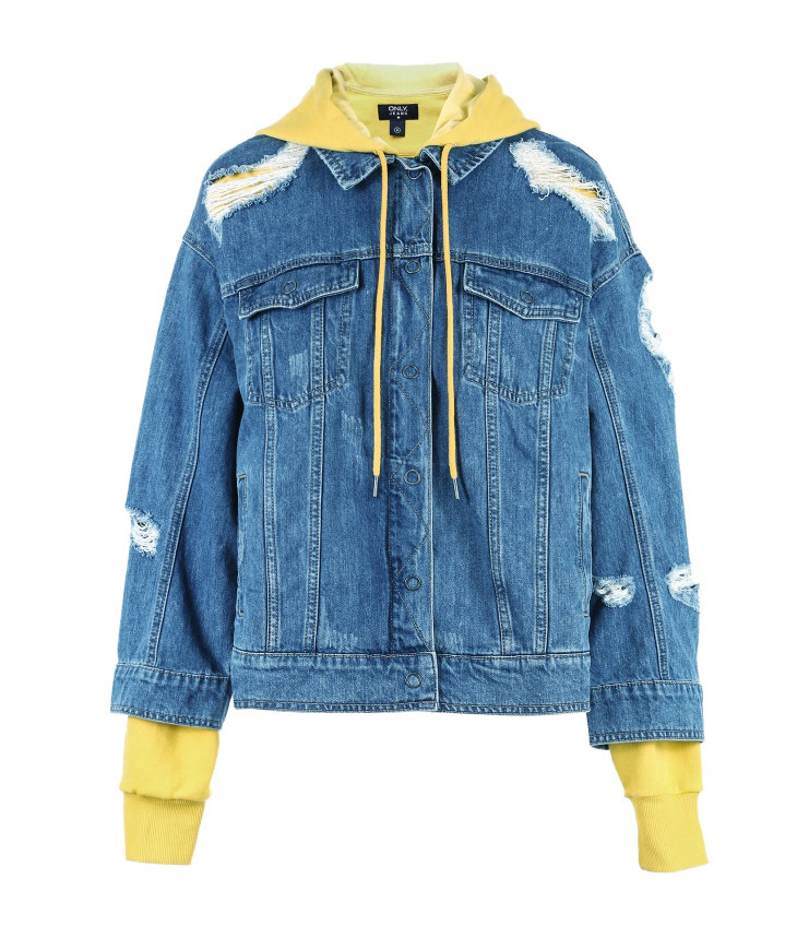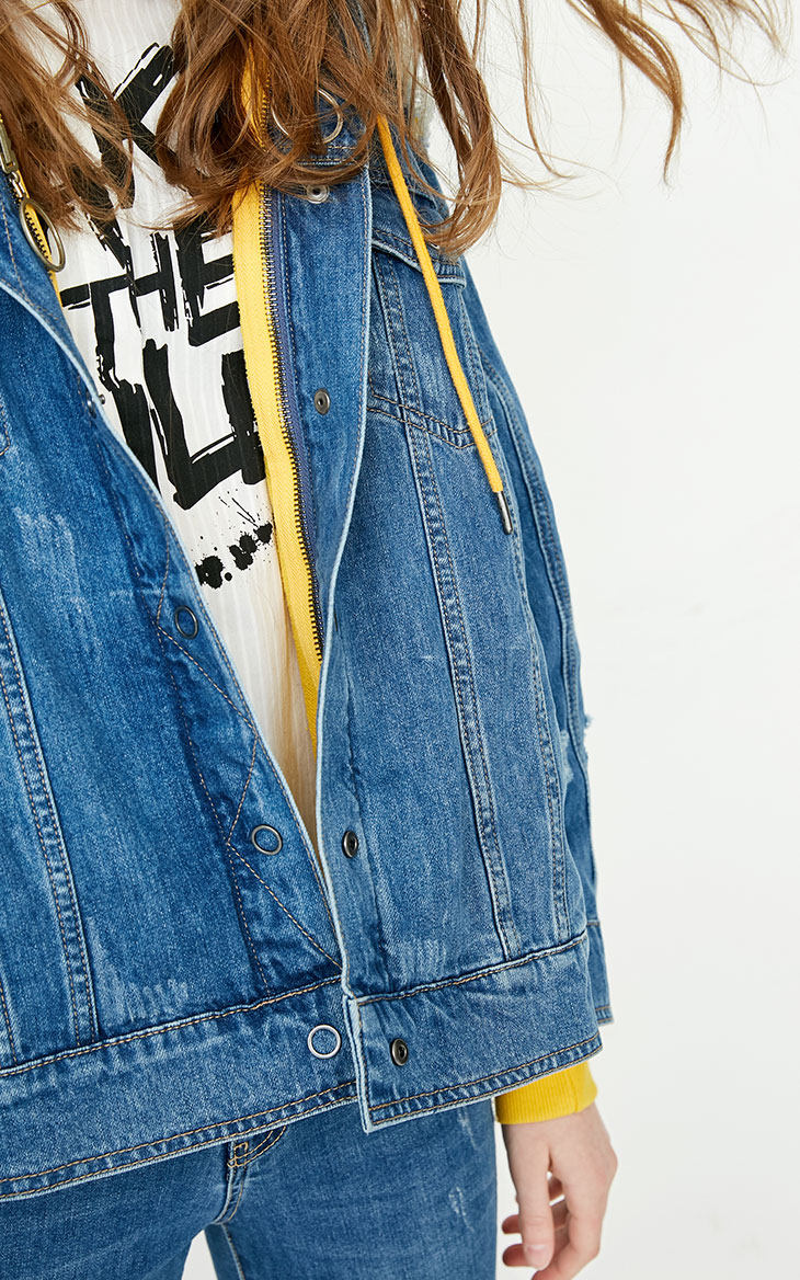 设计卖点 | ●抽绳连帽 ●破洞设计 ●可拆卸成连帽开衫卫衣和破洞牛仔外套 |