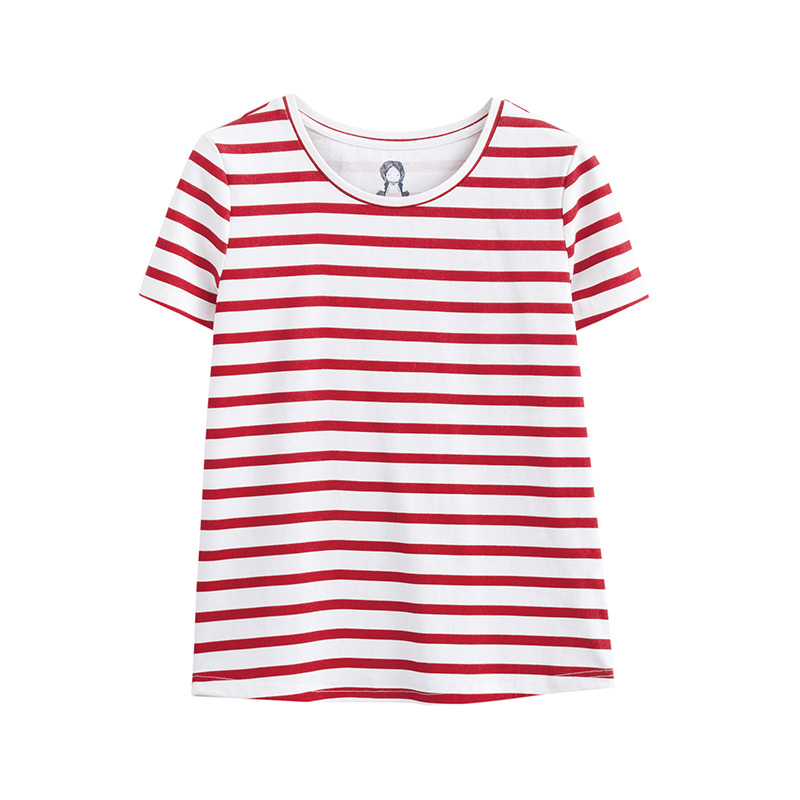茵曼2018夏装新款文艺范纯棉减龄海军风短袖条纹衫T恤女上衣学生
