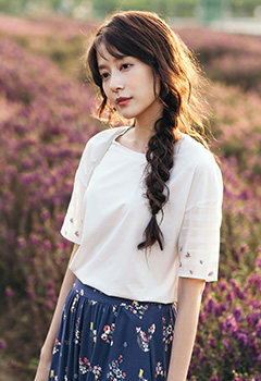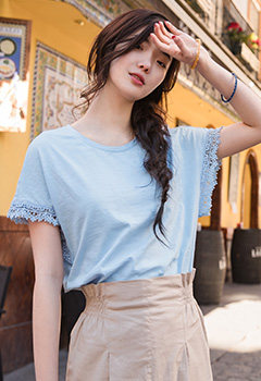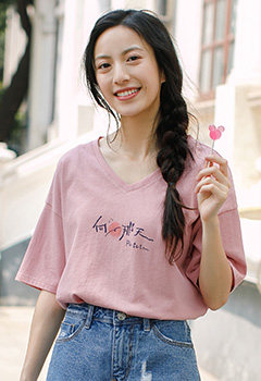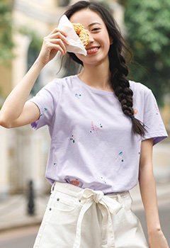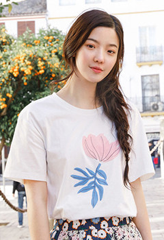 D茵曼女新款百搭纯棉清新文艺范印花中袖T恤女式上衣1882022787H