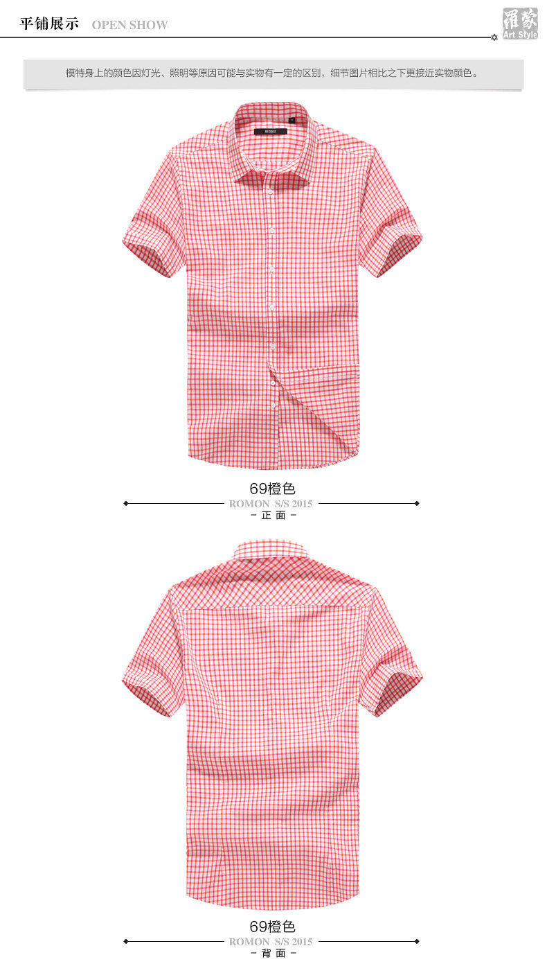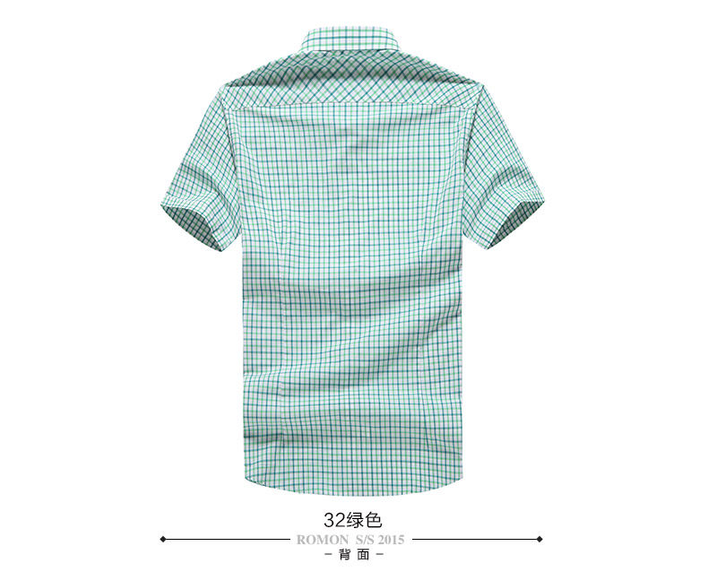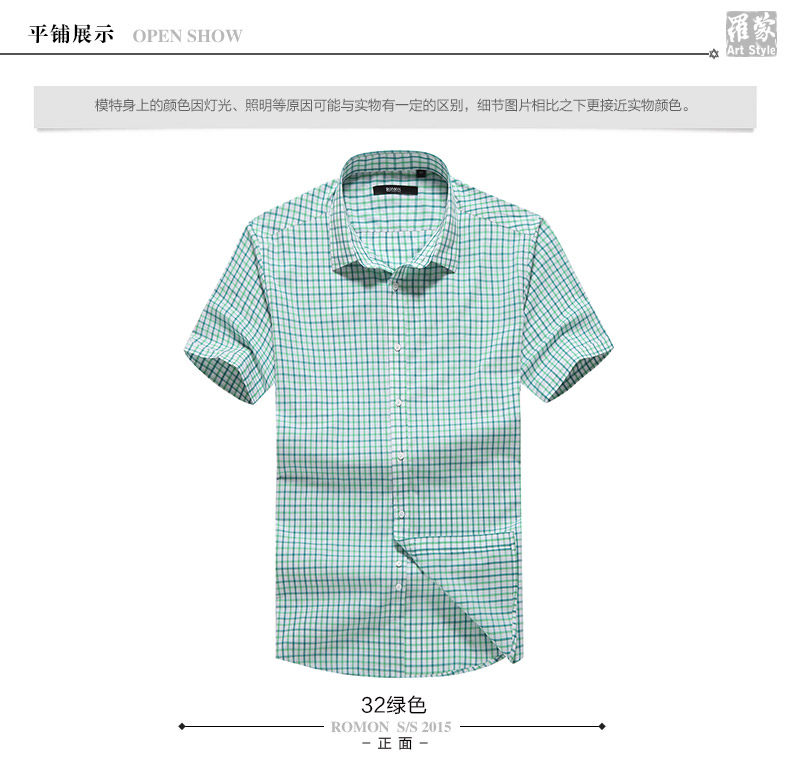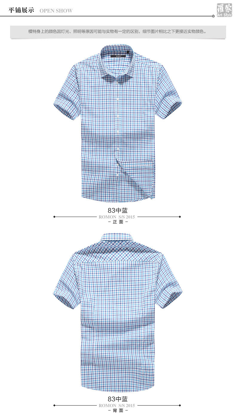 Romon/罗蒙短袖休闲衬衫2018夏季中青年牛津纺翻领纯色时尚寸衫男