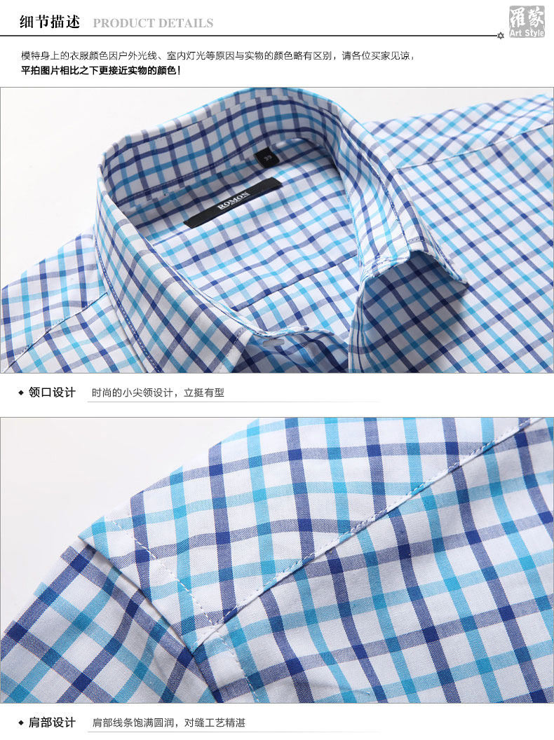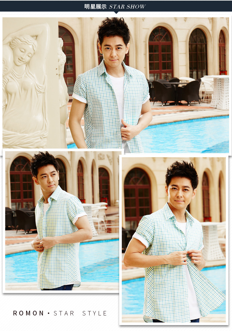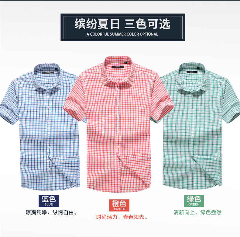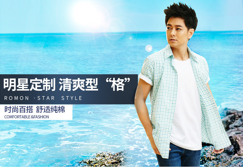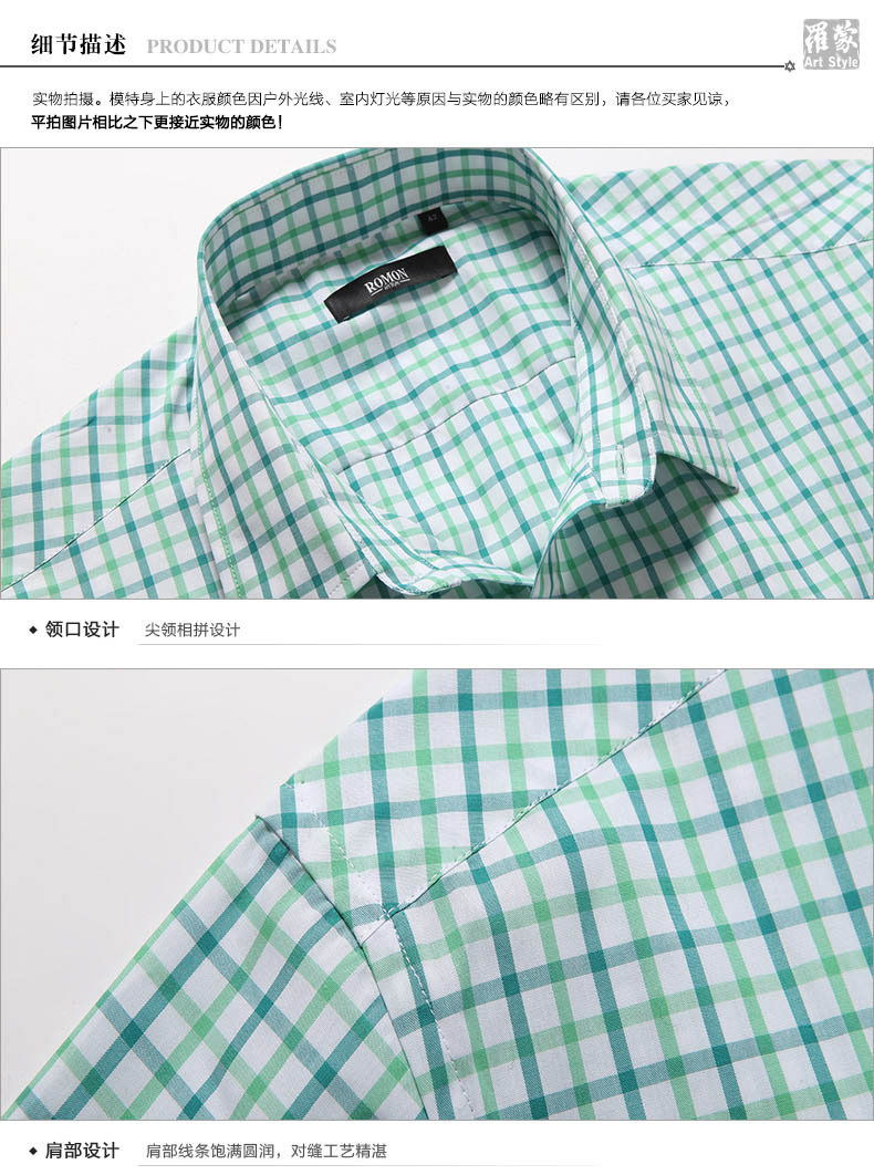 Romon/罗蒙短袖休闲衬衫2018夏季中青年牛津纺翻领纯色时尚寸衫男