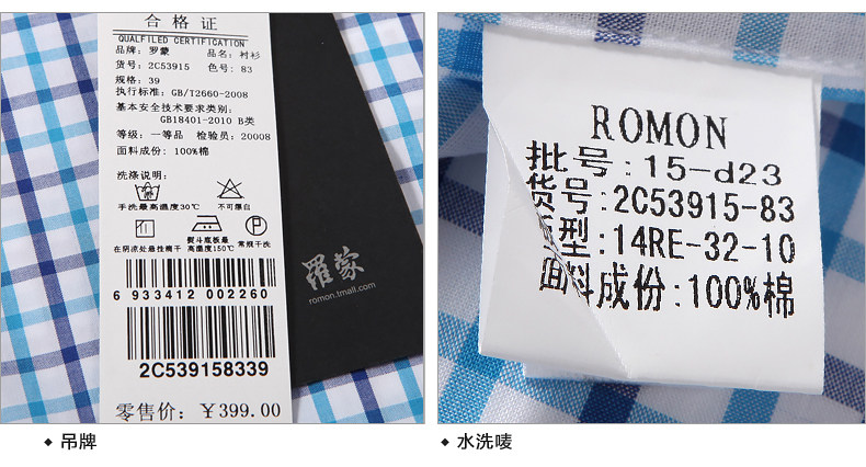 Romon/罗蒙100%纯棉长袖衬衫2018春季纯色大码衬衣商务休闲上衣男