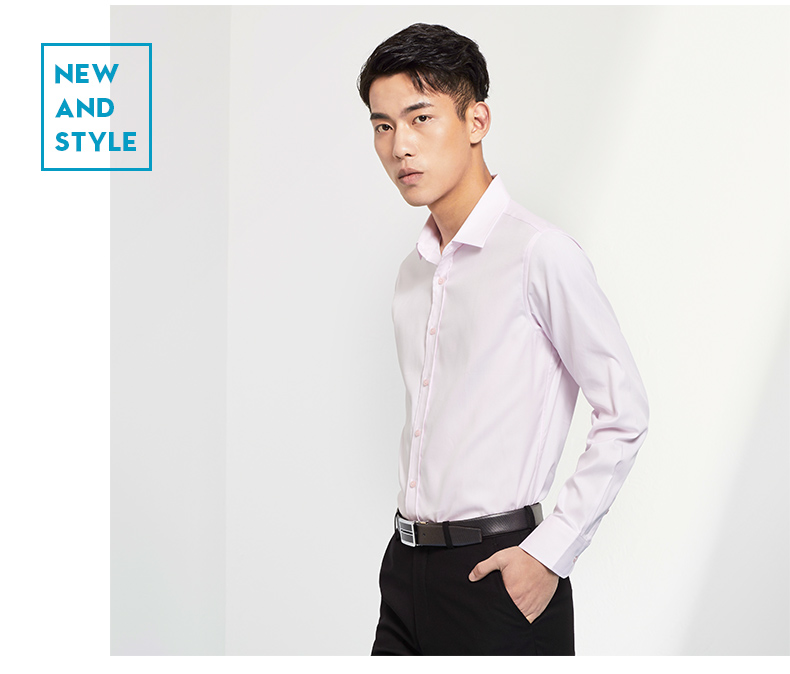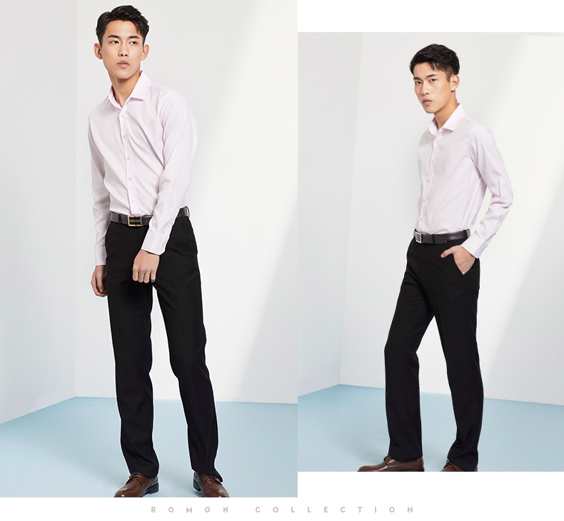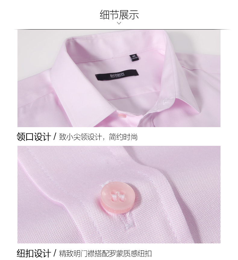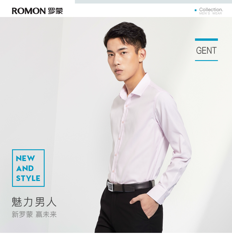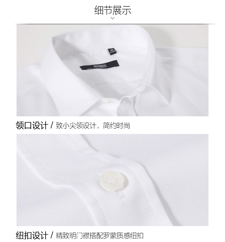 Romon/罗蒙长袖衬衫2018青年男士纯棉上衣商务休闲纯色白色衬衣男