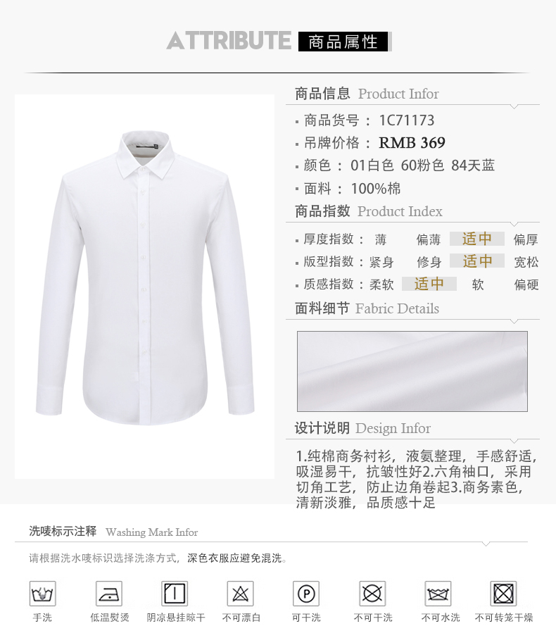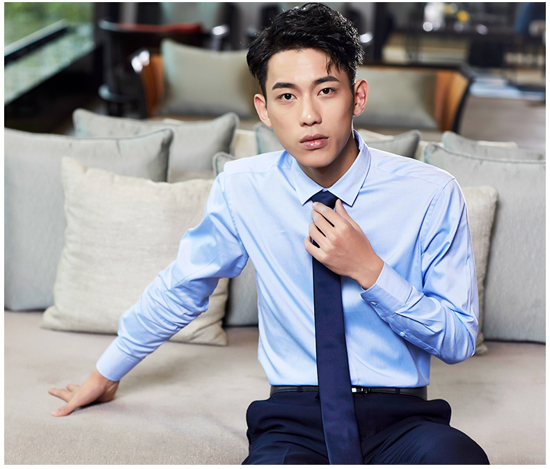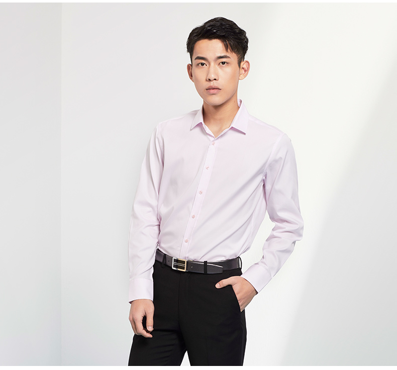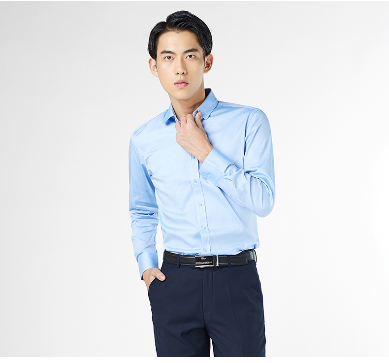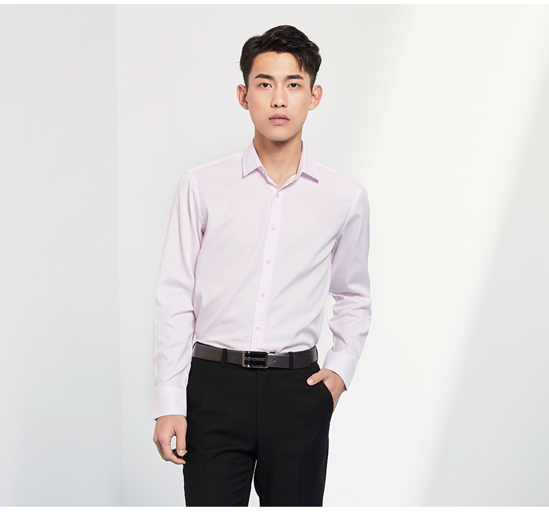Romon/罗蒙长袖衬衫2018青年男士纯棉上衣商务休闲纯色白色衬衣男
