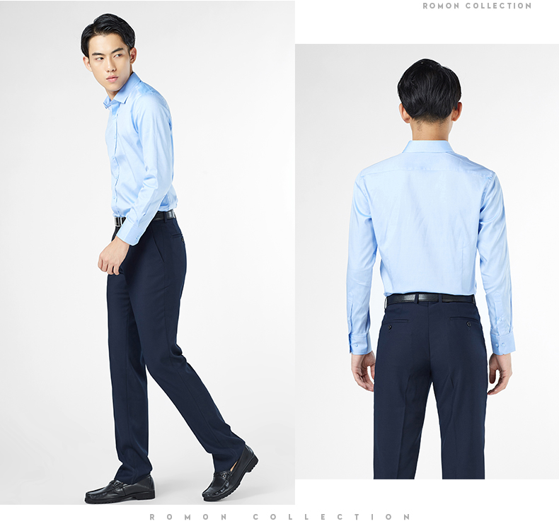 Romon/罗蒙休闲裤男修身高腰长裤子商务休闲100%纯棉男裤直筒裤子