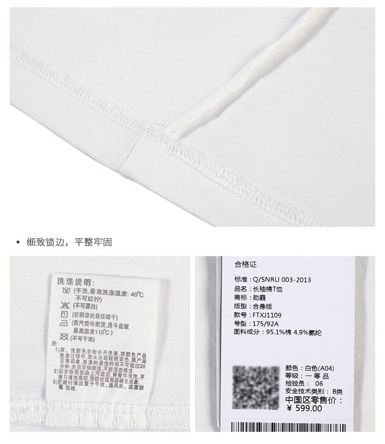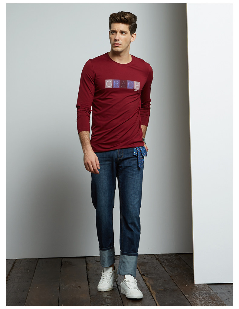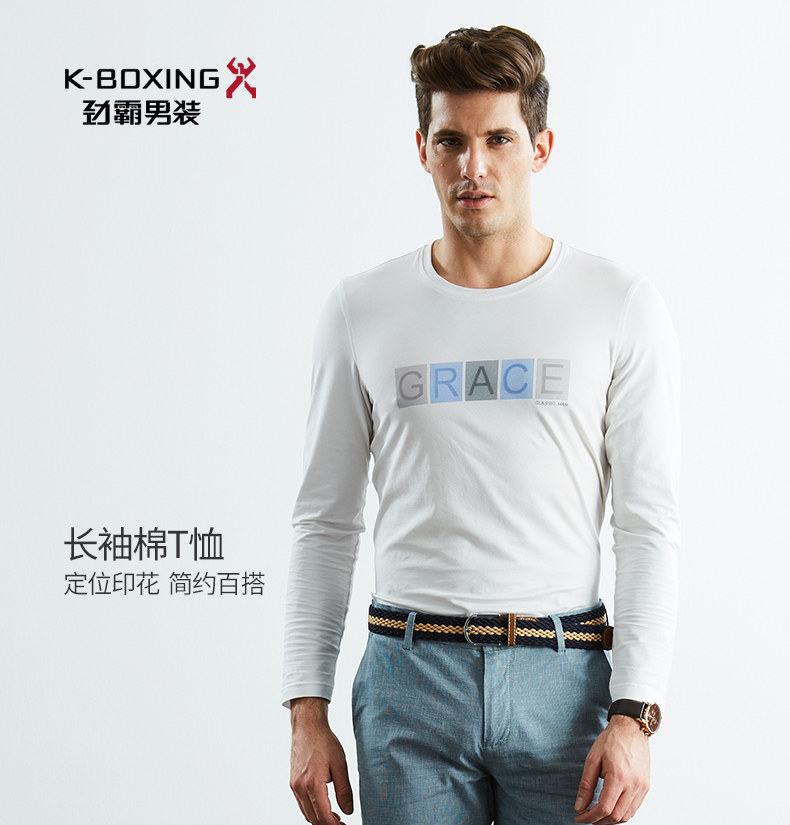 劲霸男士长袖T恤春圆领字母印花长袖T恤长袖打底衫时尚|FTXJ1109