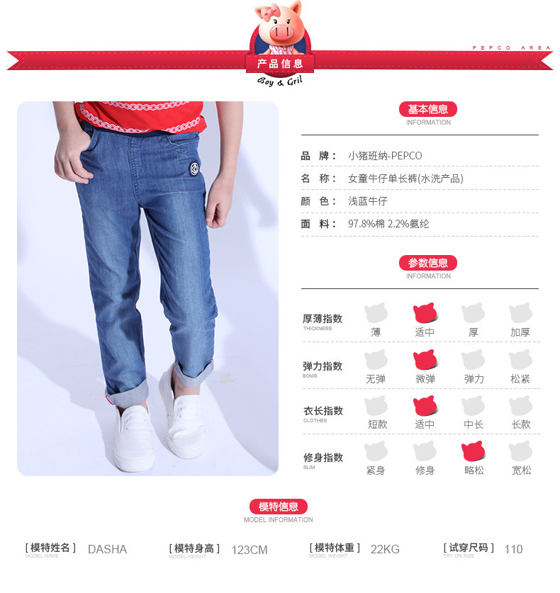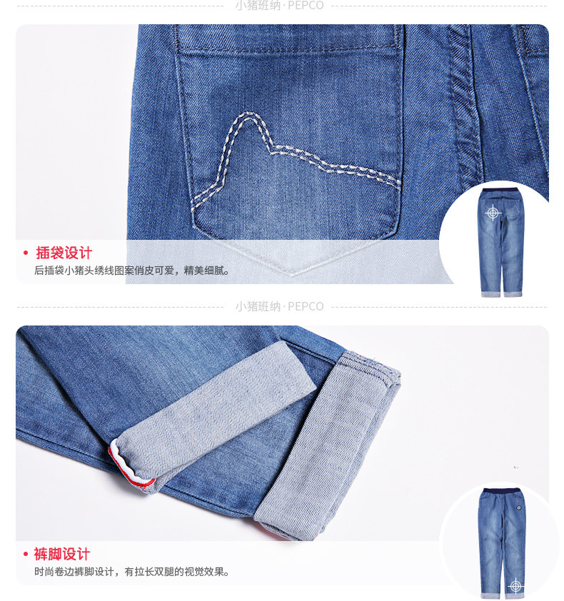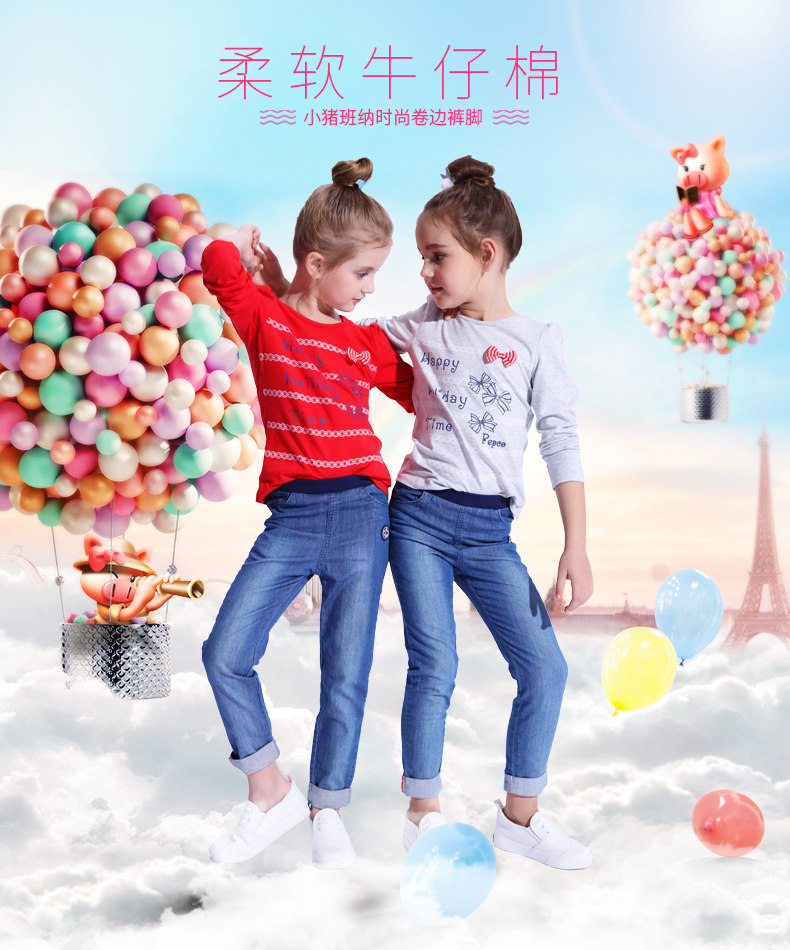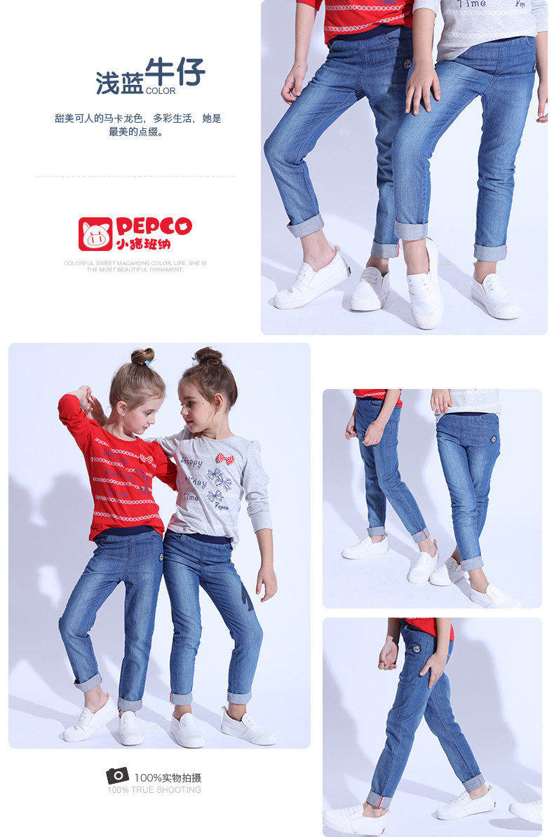 小猪班纳童装2018春装新款儿童休闲裤子女童春季长裤中大童牛仔裤