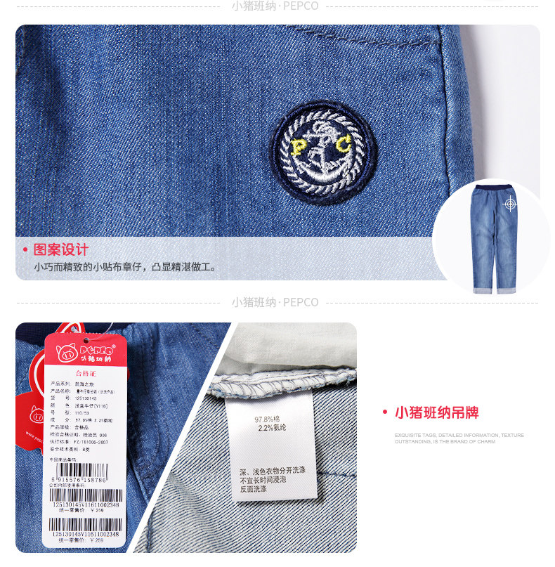 小猪班纳童装男童牛仔裤2018春秋装女童休闲裤中大童裤子儿童长裤