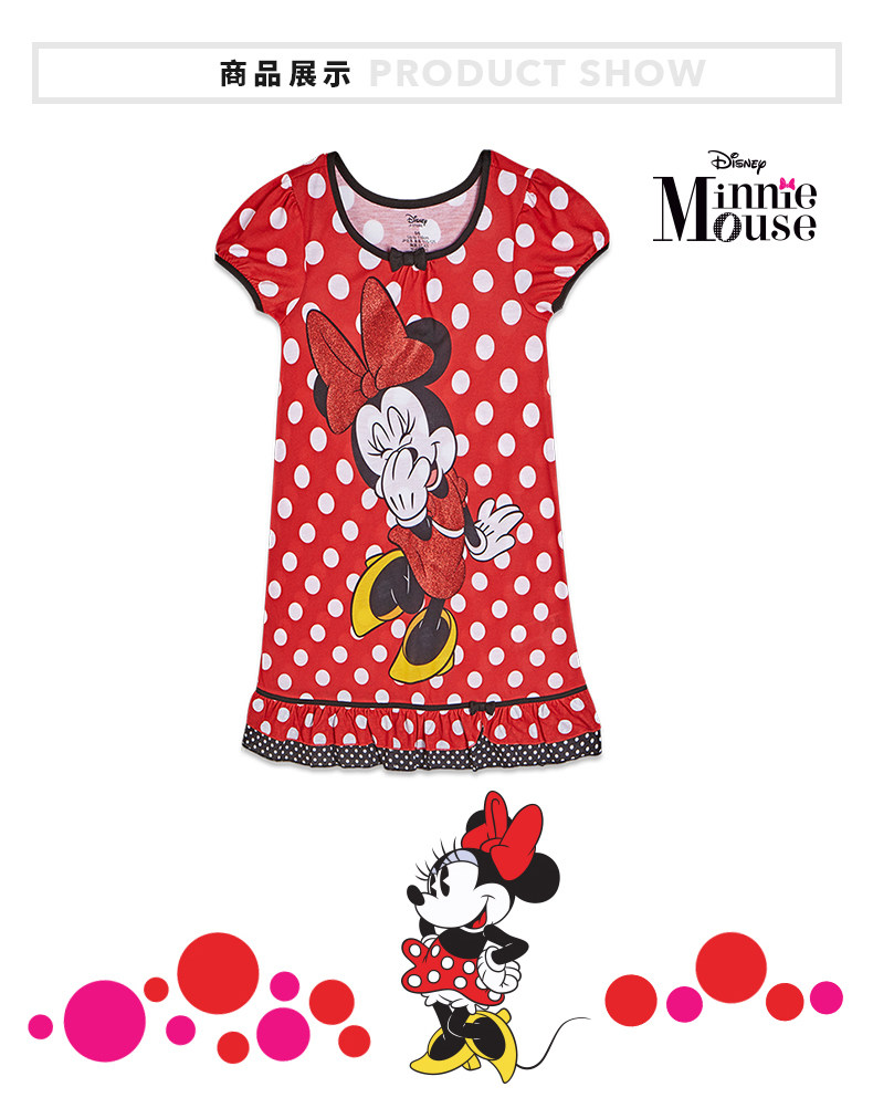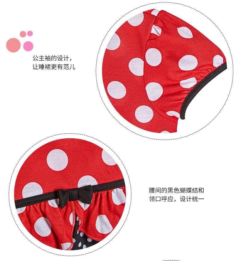 迪士尼商店 经典米妮红色波点儿童睡衣连衣裙女童夏季家居服裙子