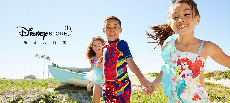 迪士尼商店 白雪公主蓝色碎花儿童短袖圆领连衣裙女童夏季裙子