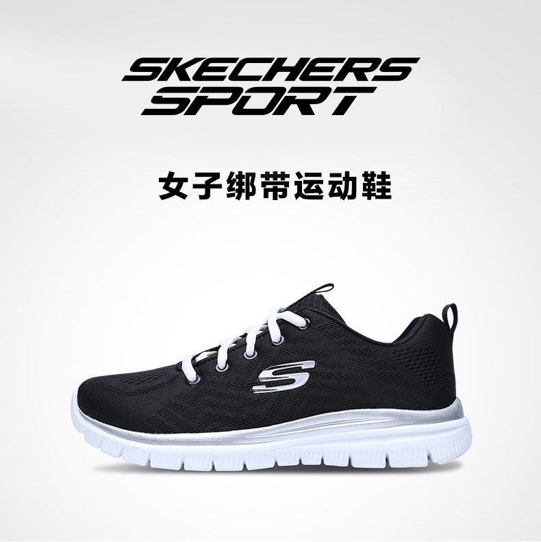 Skechers斯凯奇女鞋新款蕾丝玛丽珍鞋 轻质减震时尚休闲鞋 23258