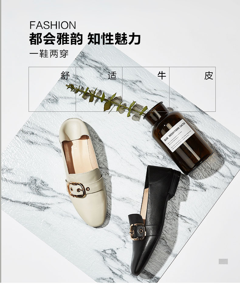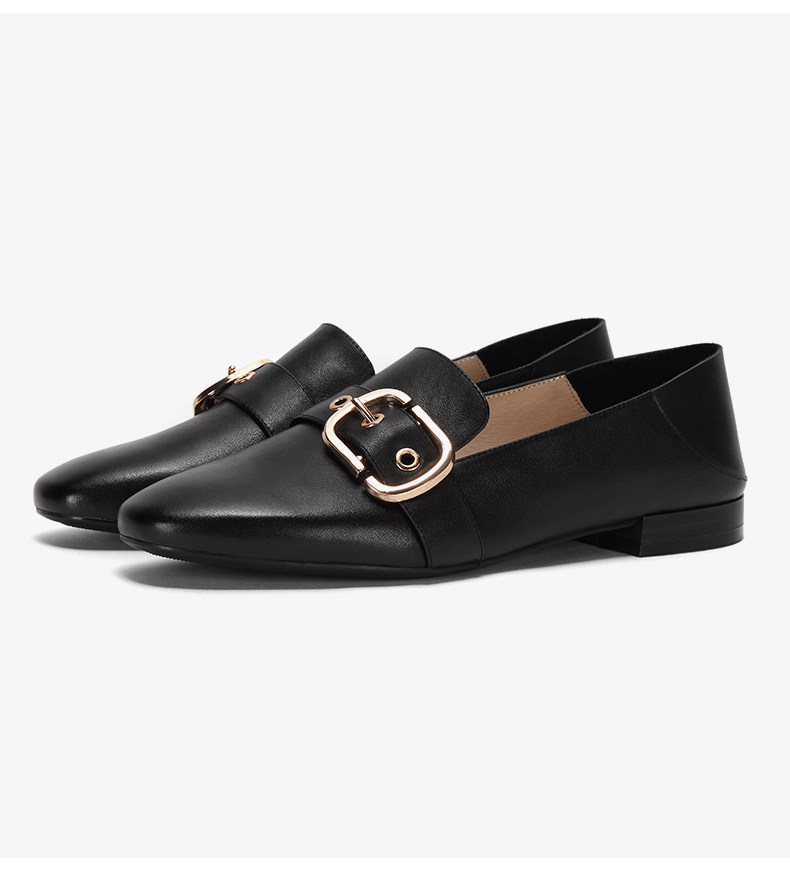Daphne/达芙妮17休闲平底浅口单鞋 时尚金属扣饰低跟女鞋