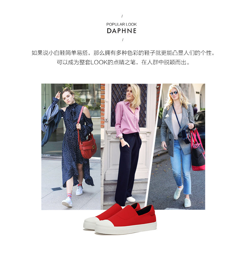 Daphne/达芙妮17休闲平底浅口单鞋 时尚金属扣饰低跟女鞋