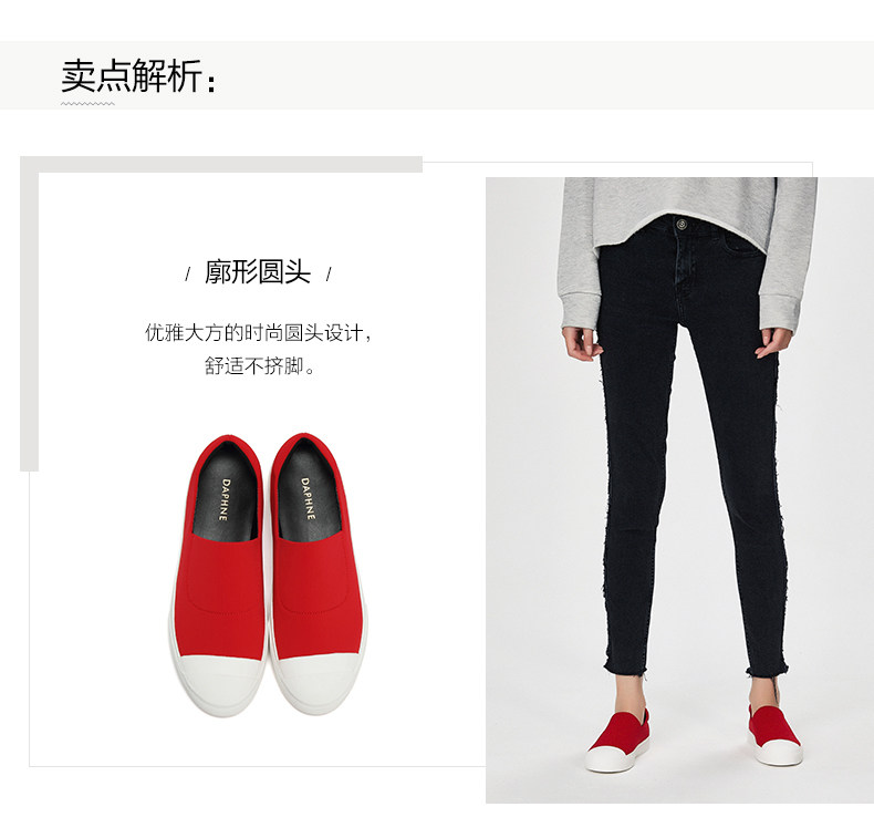 Daphne/达芙妮2018春季新款舒适低跟单鞋休闲鞋女厚底圆头帆布鞋