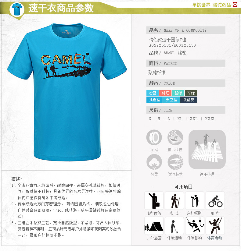 【范冰冰同款】camel骆驼户外男女皮肤衣夏衣透气轻薄情侣款
