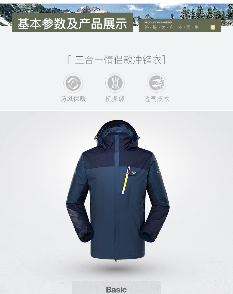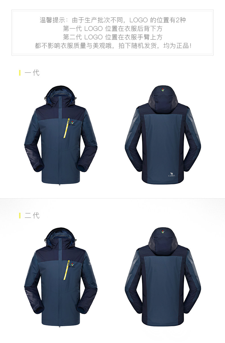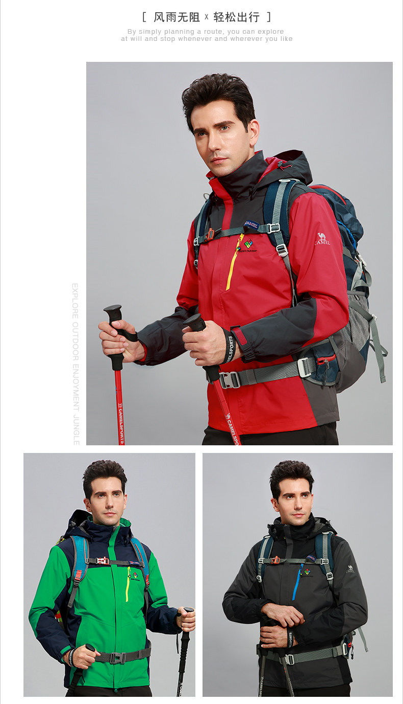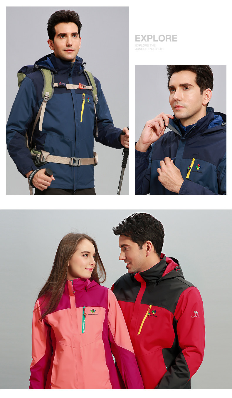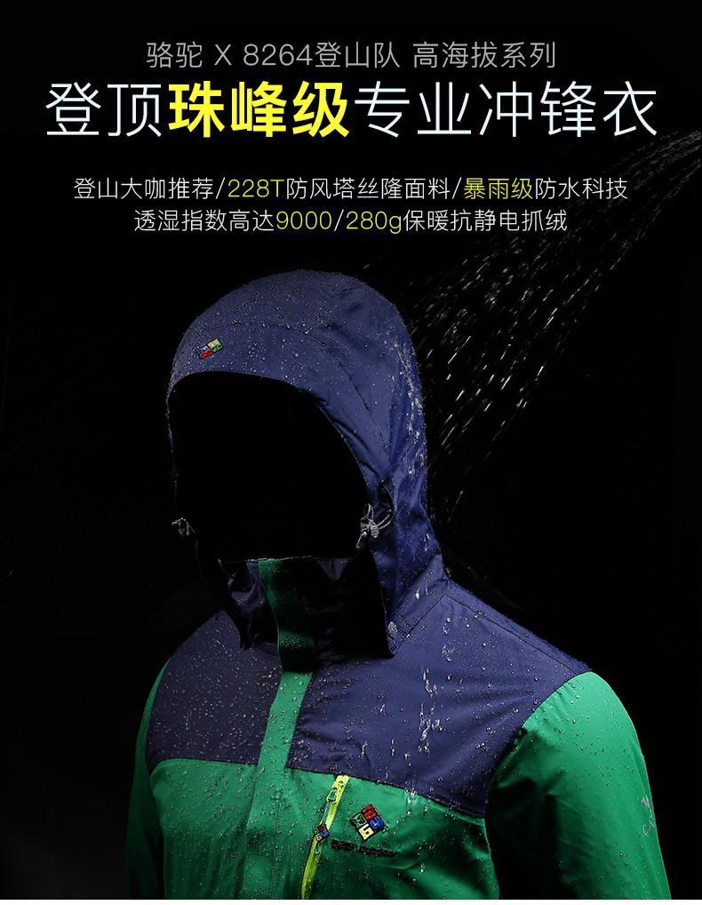 骆驼&8264登山队系列户外透气冲锋衣男女三合一两件套西藏登山服