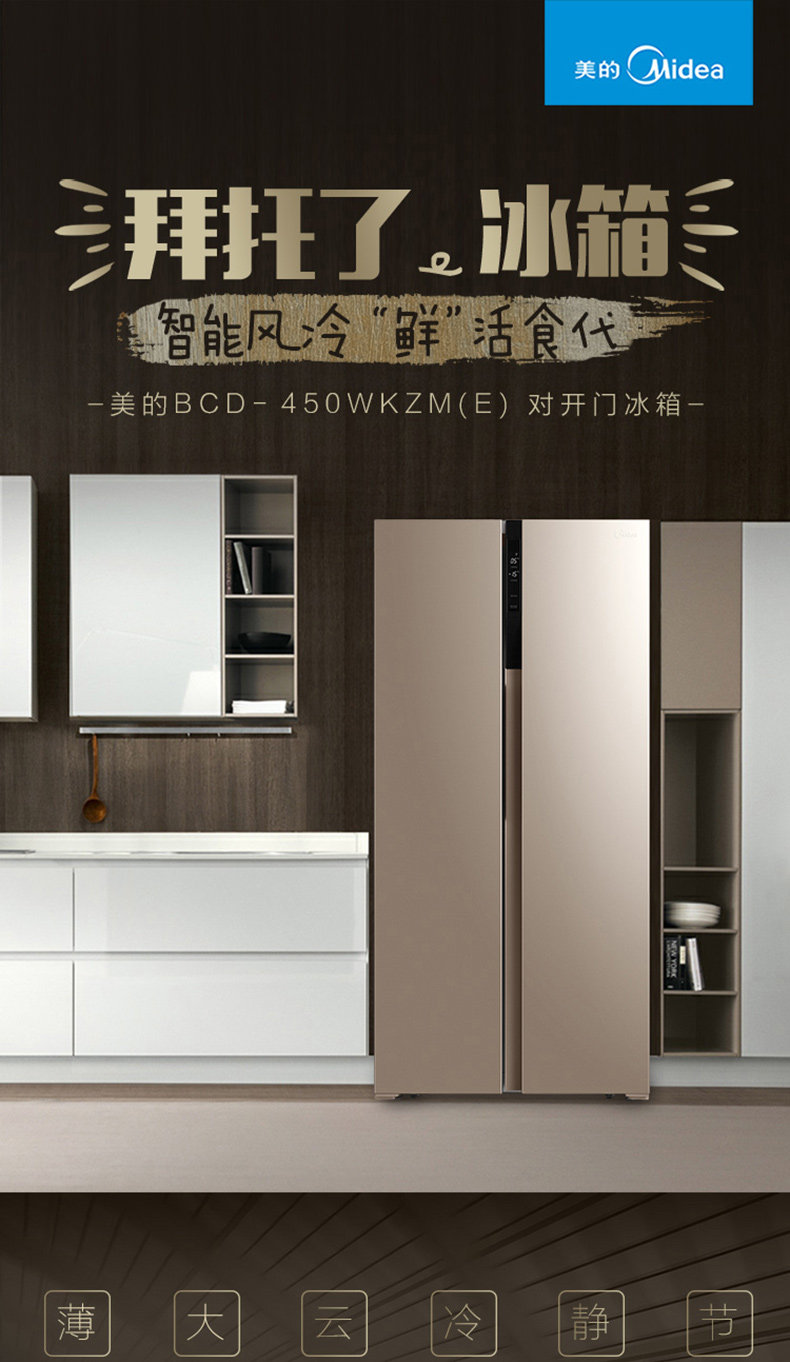 Midea/美的 BCD-450WKZM(E)冰箱双开门家用无霜节能对开门电冰箱