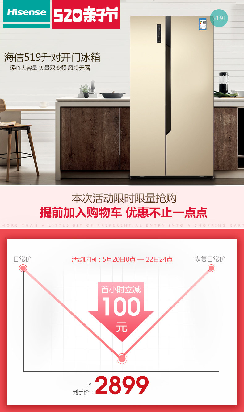 Hisense/海信 BCD-628WTET/Q 对开门双开门风冷智能节能大电冰箱