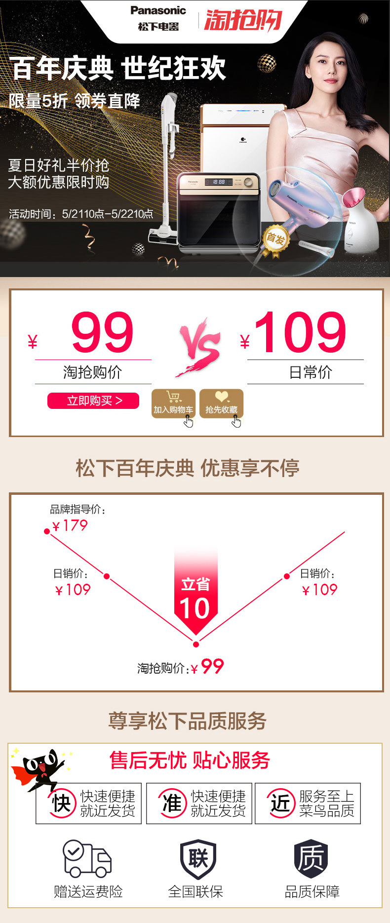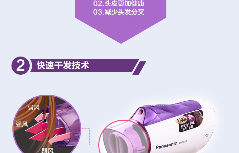 Panasonic/松下吹风机家用发廊负离子冷热风大功率电吹风 EH