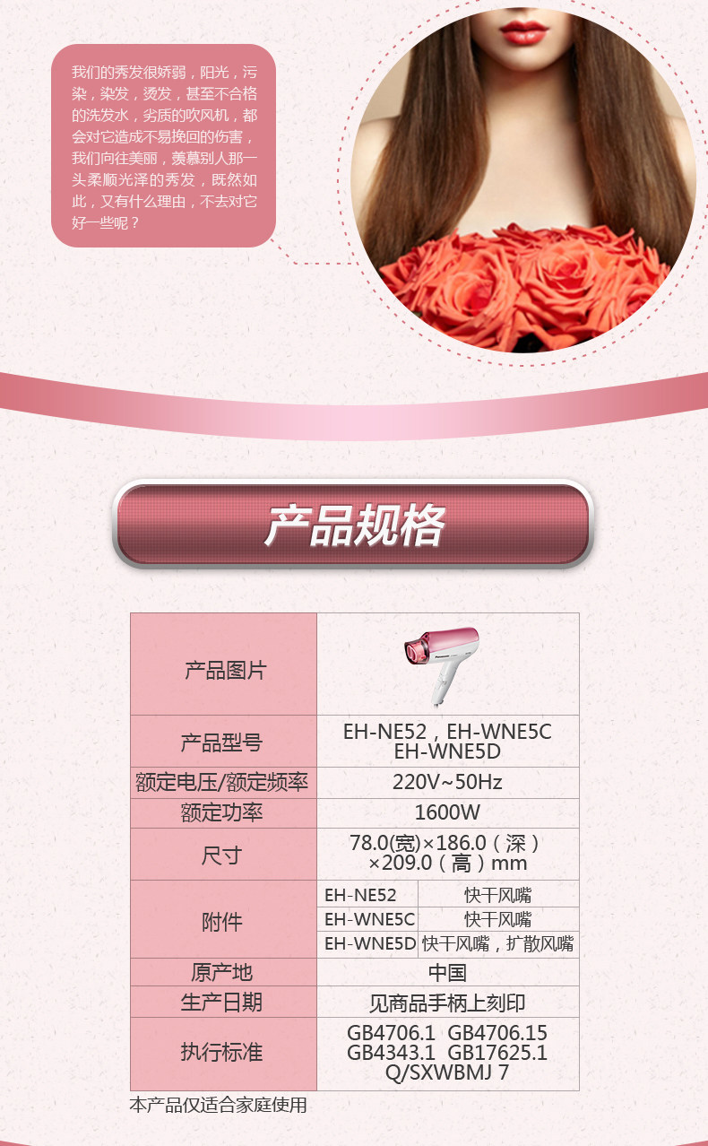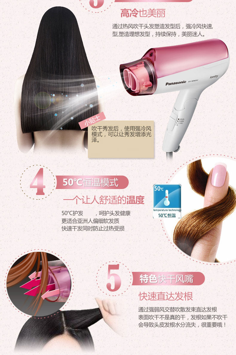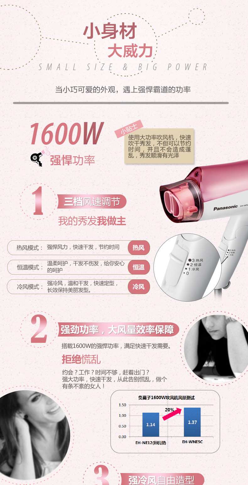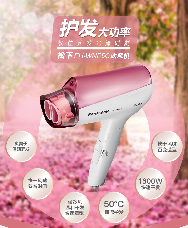 Panasonic/松下吹风机家用发廊负离子冷热风大功率电吹风 EH