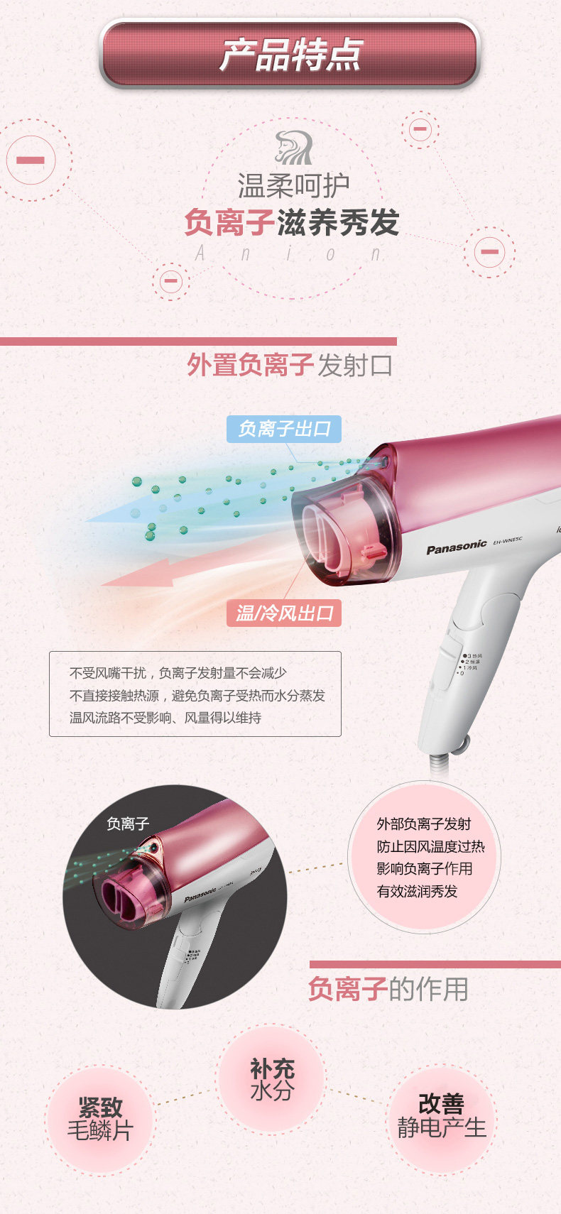 松下吹风机家用冷热风负离子护发大功率电吹风EH
