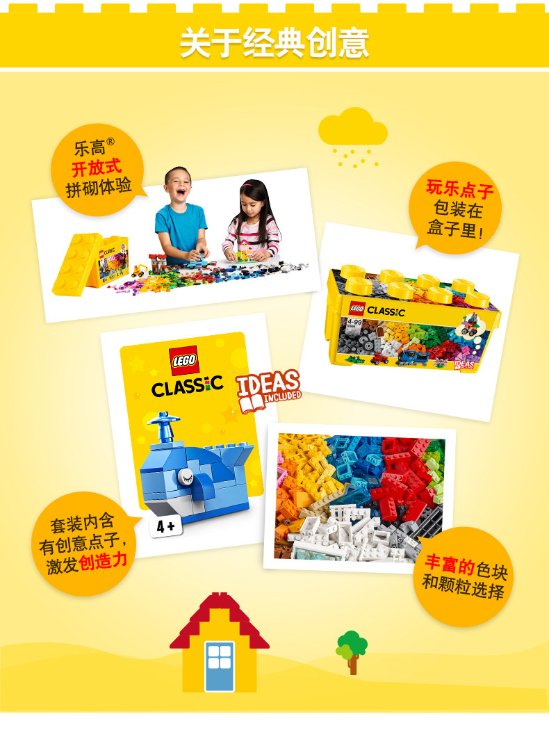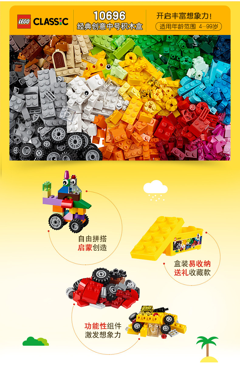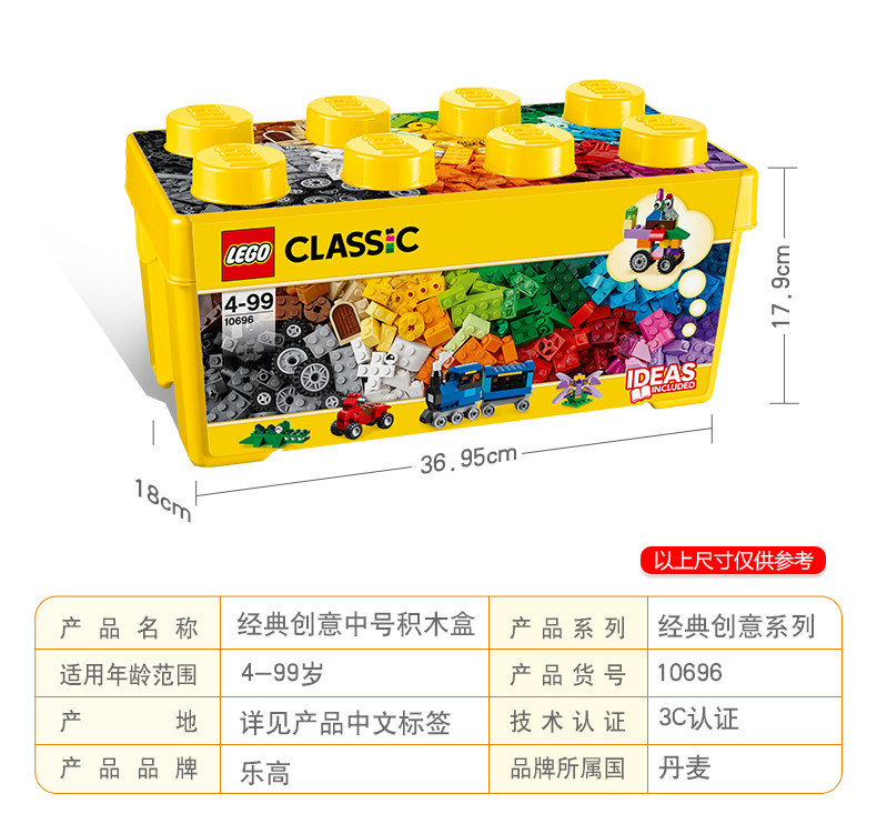 乐高经典创意系列 10696 经典创意中号积木盒 LEGO 拼插积木玩具