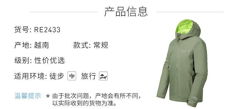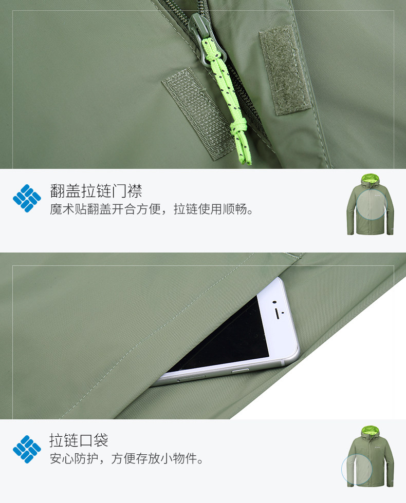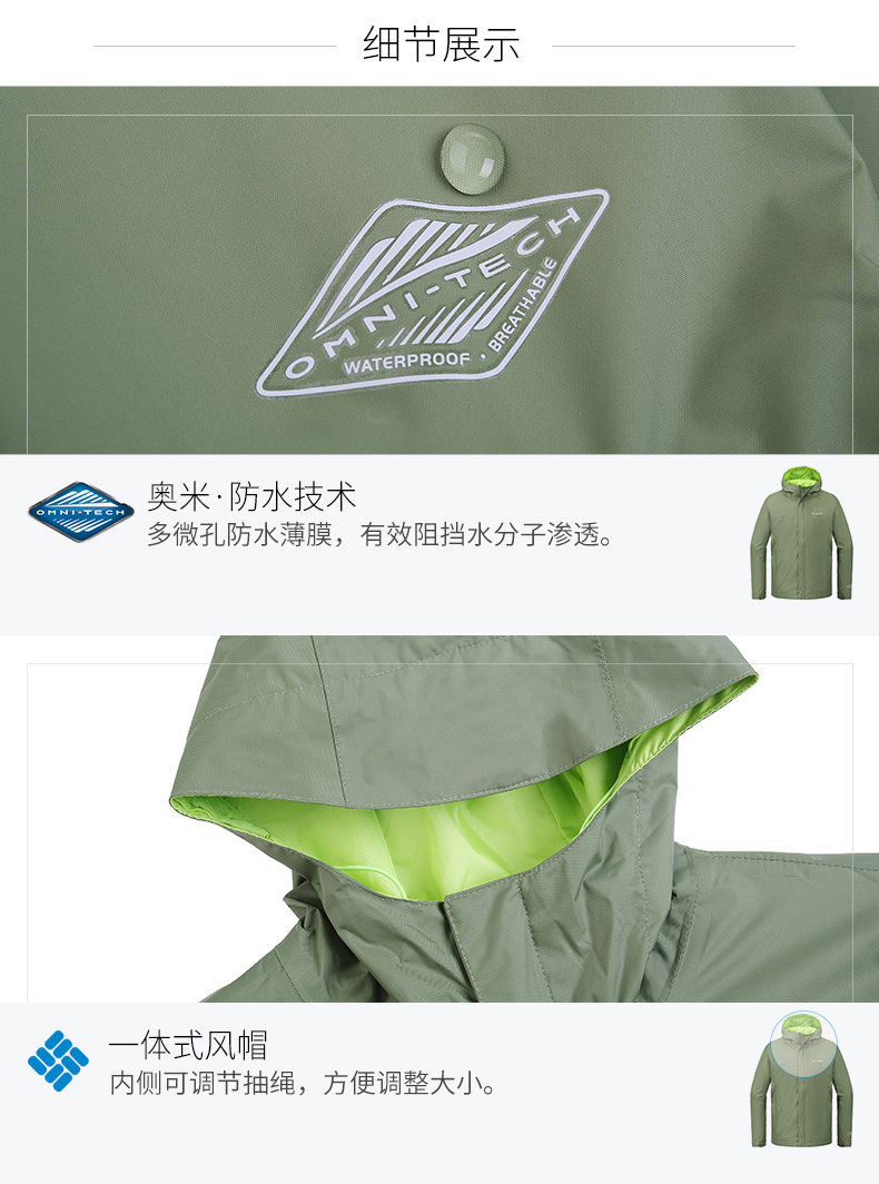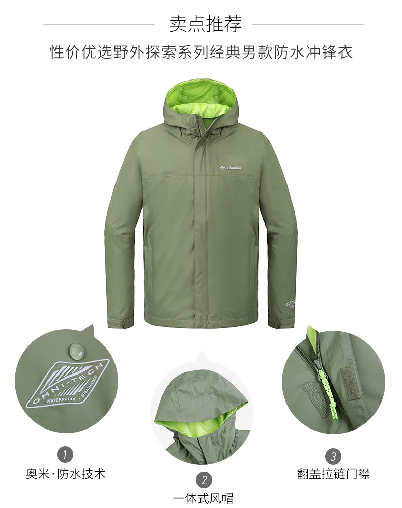 Columbia/哥伦比亚户外18春夏新品男款可收纳防水冲锋衣RE1001