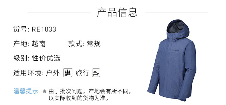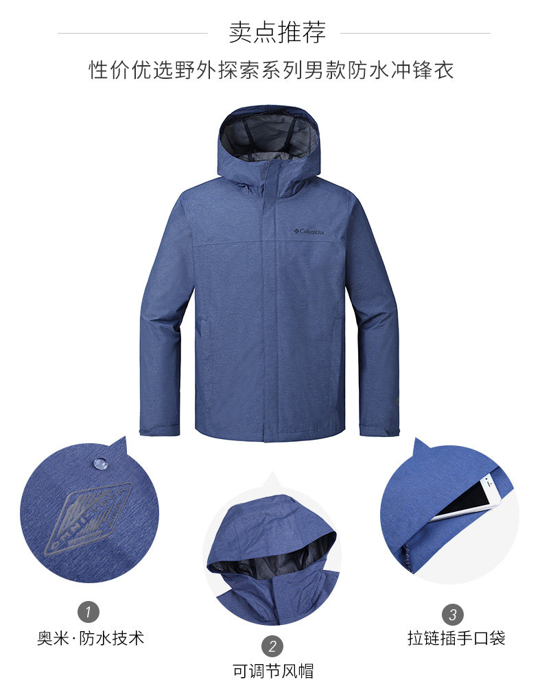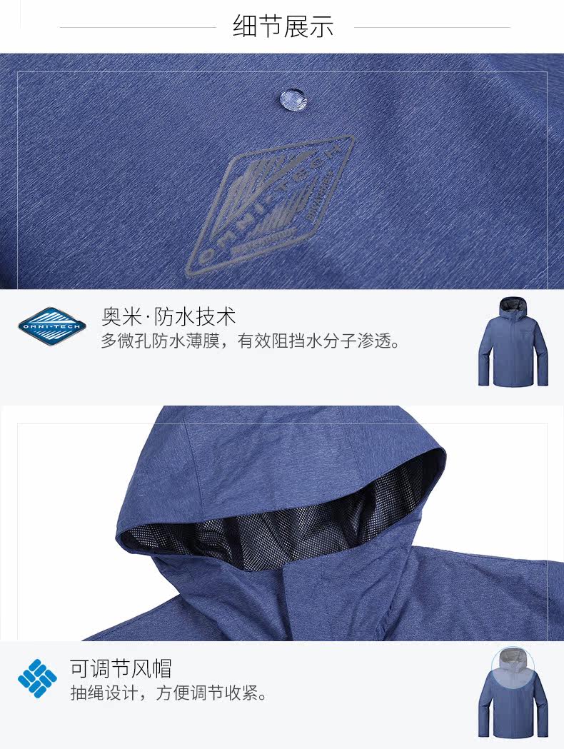 Columbia/哥伦比亚户外18春夏新品男款可收纳防水冲锋衣RE1001