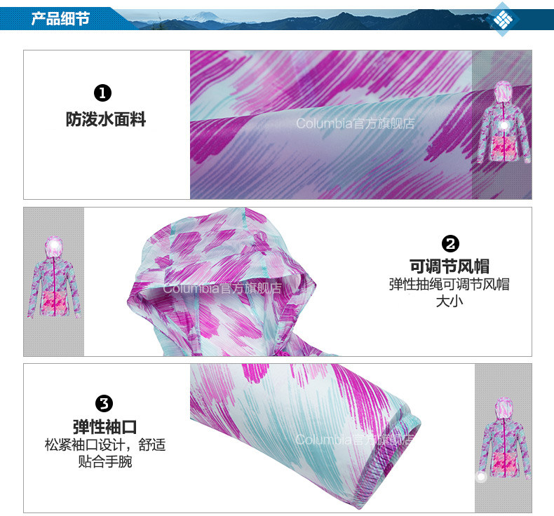 Columbia哥伦比亚女款防泼水可打包皮肤风衣PL2358