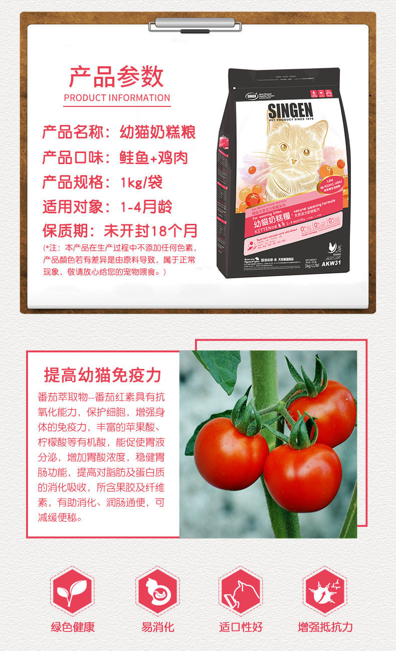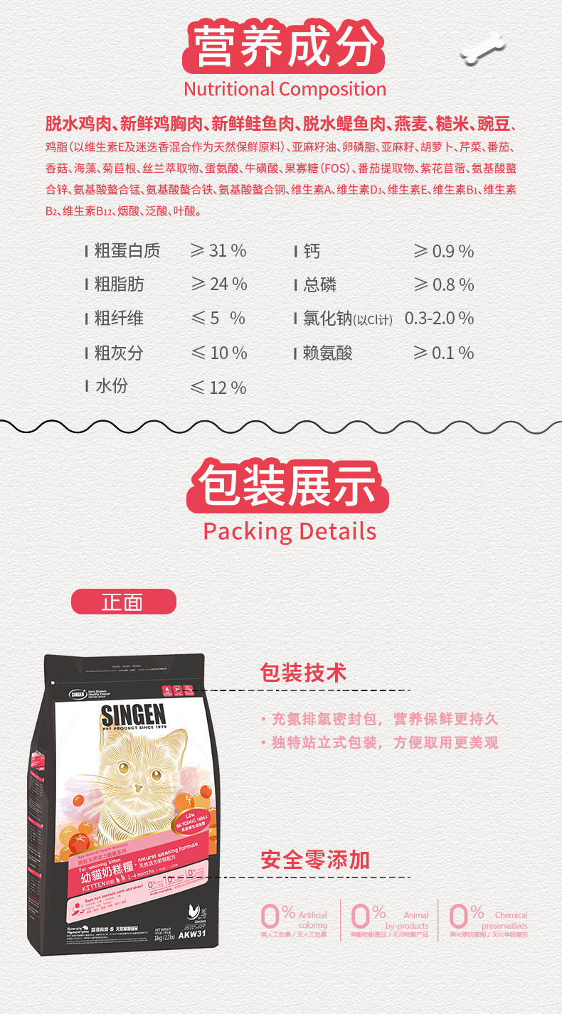 Singen 发育宝天然幼猫奶糕粮AKW31幼猫奶糕粮英短美短折耳猫 1kg