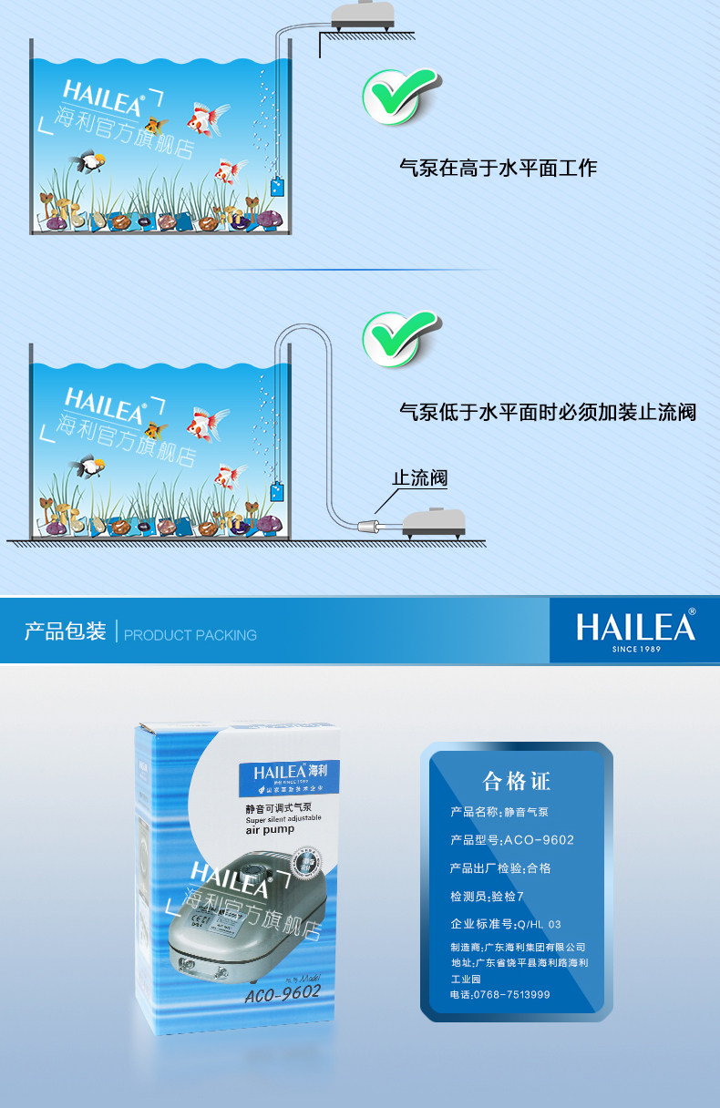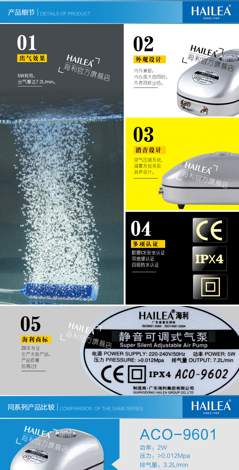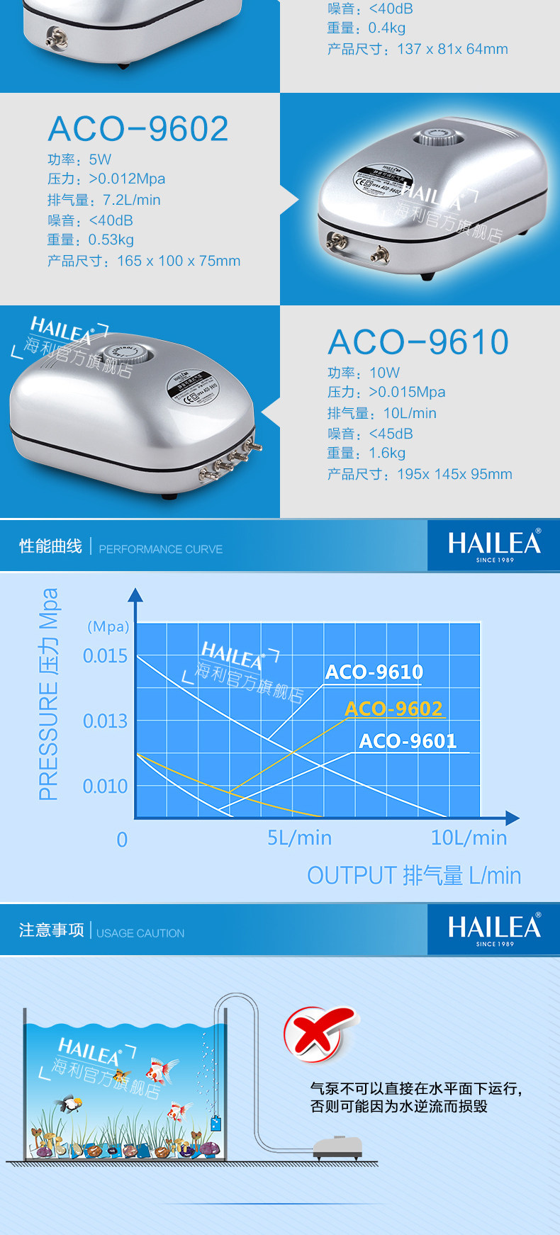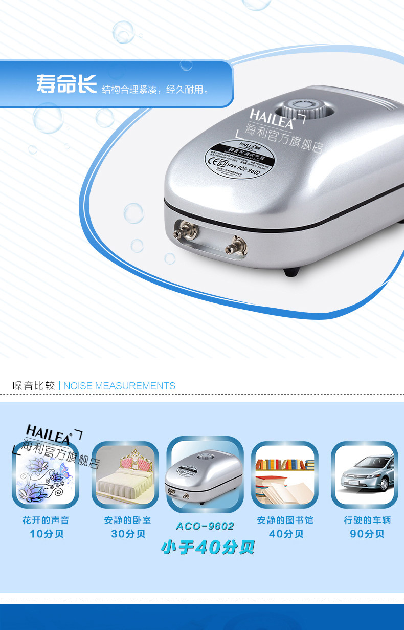 海利ACO-9601静音可调氧气泵增氧泵鱼缸增氧机养鱼氧加氧泵水族