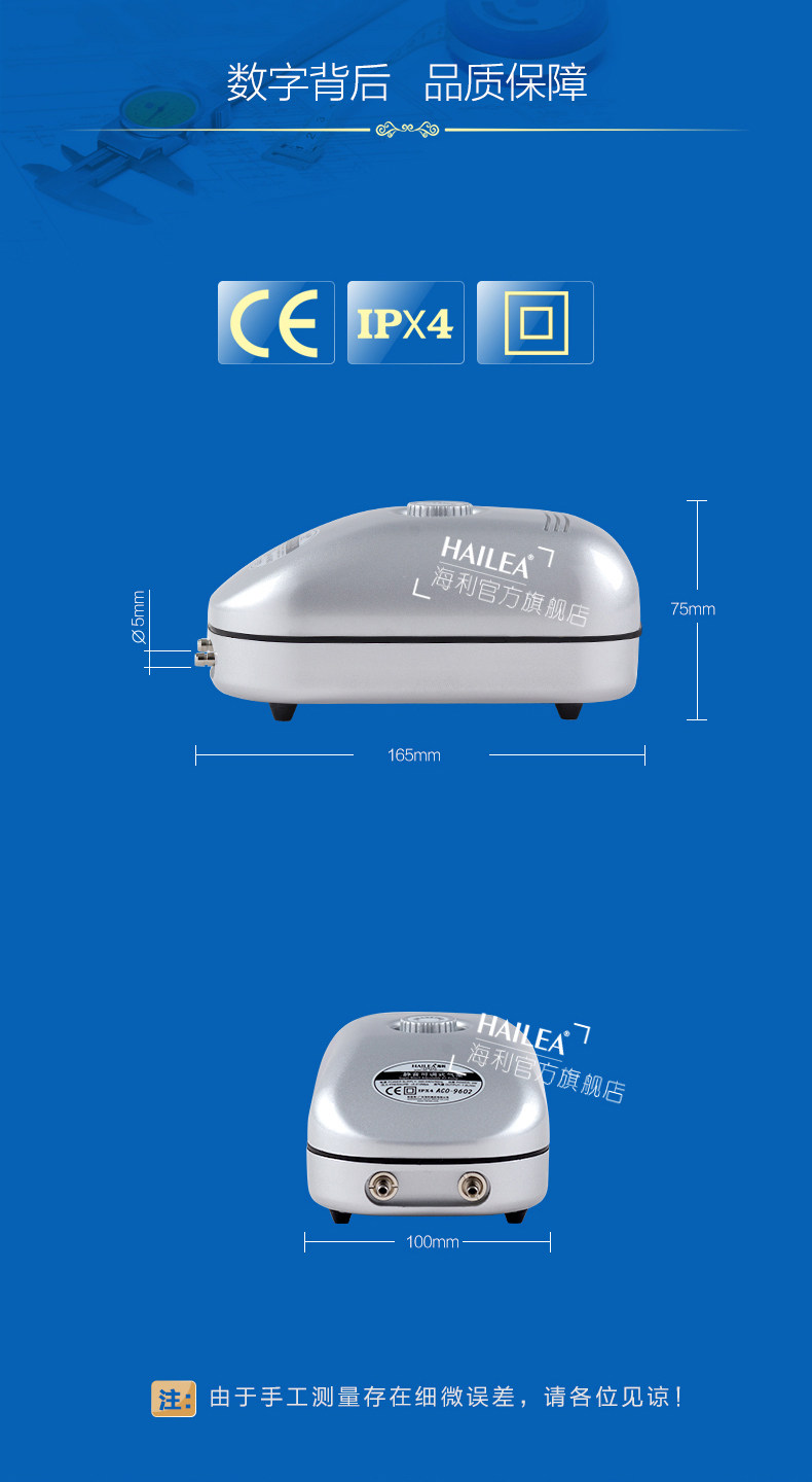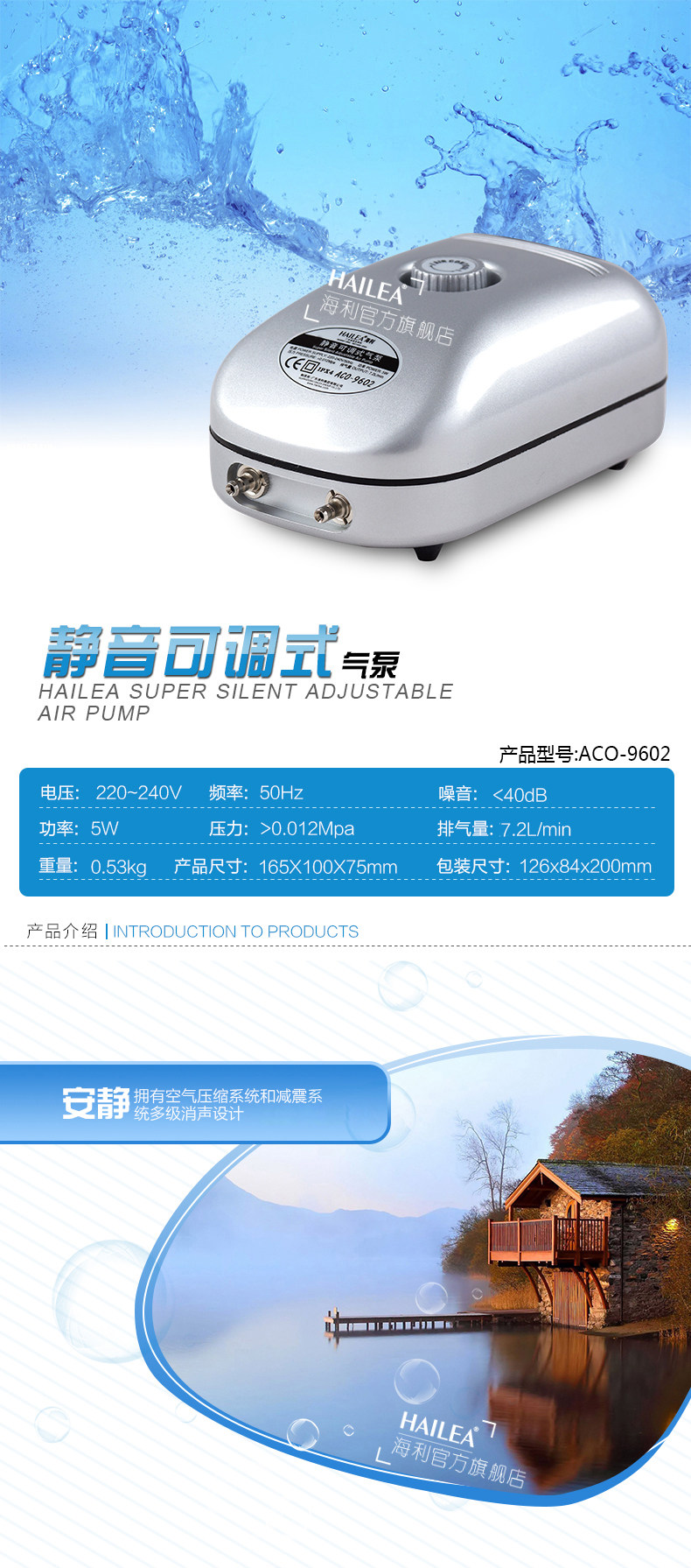 海利ACO-9610静音可调式氧气泵增氧泵鱼缸增氧机养鱼加氧泵水族