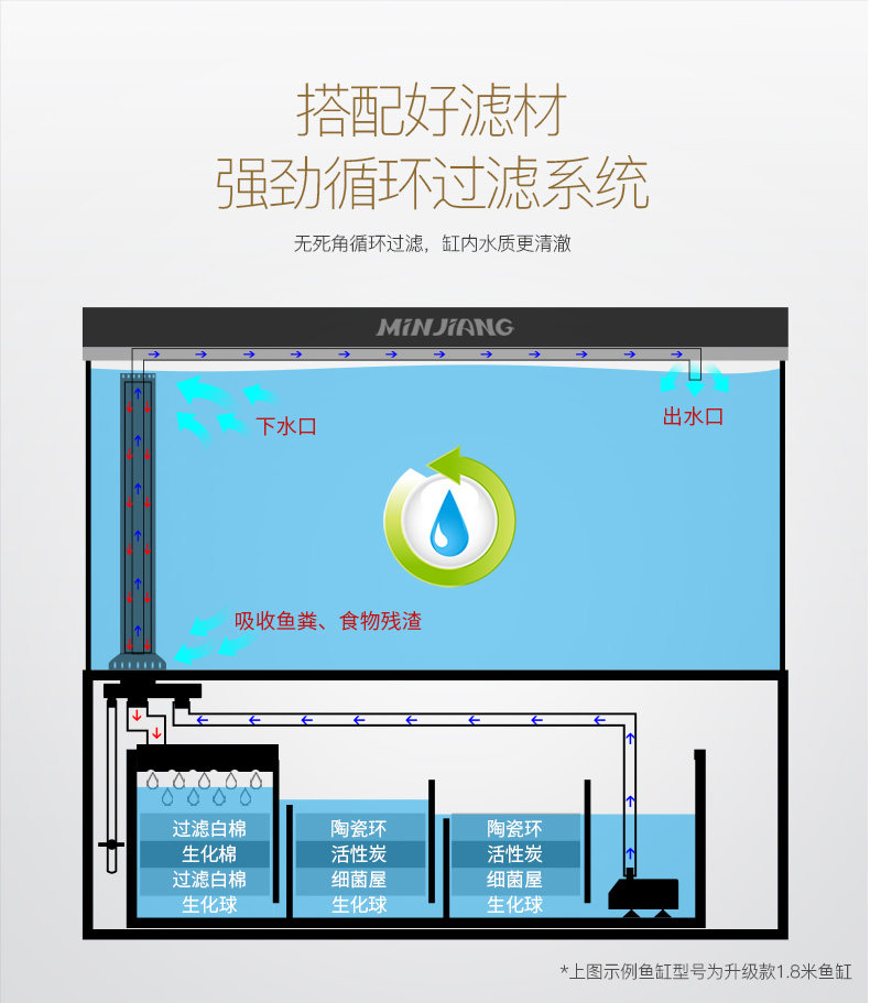 闽江鱼缸水族箱中型底过滤生态龙鱼缸玻璃上滤创意造景金鱼缸底柜